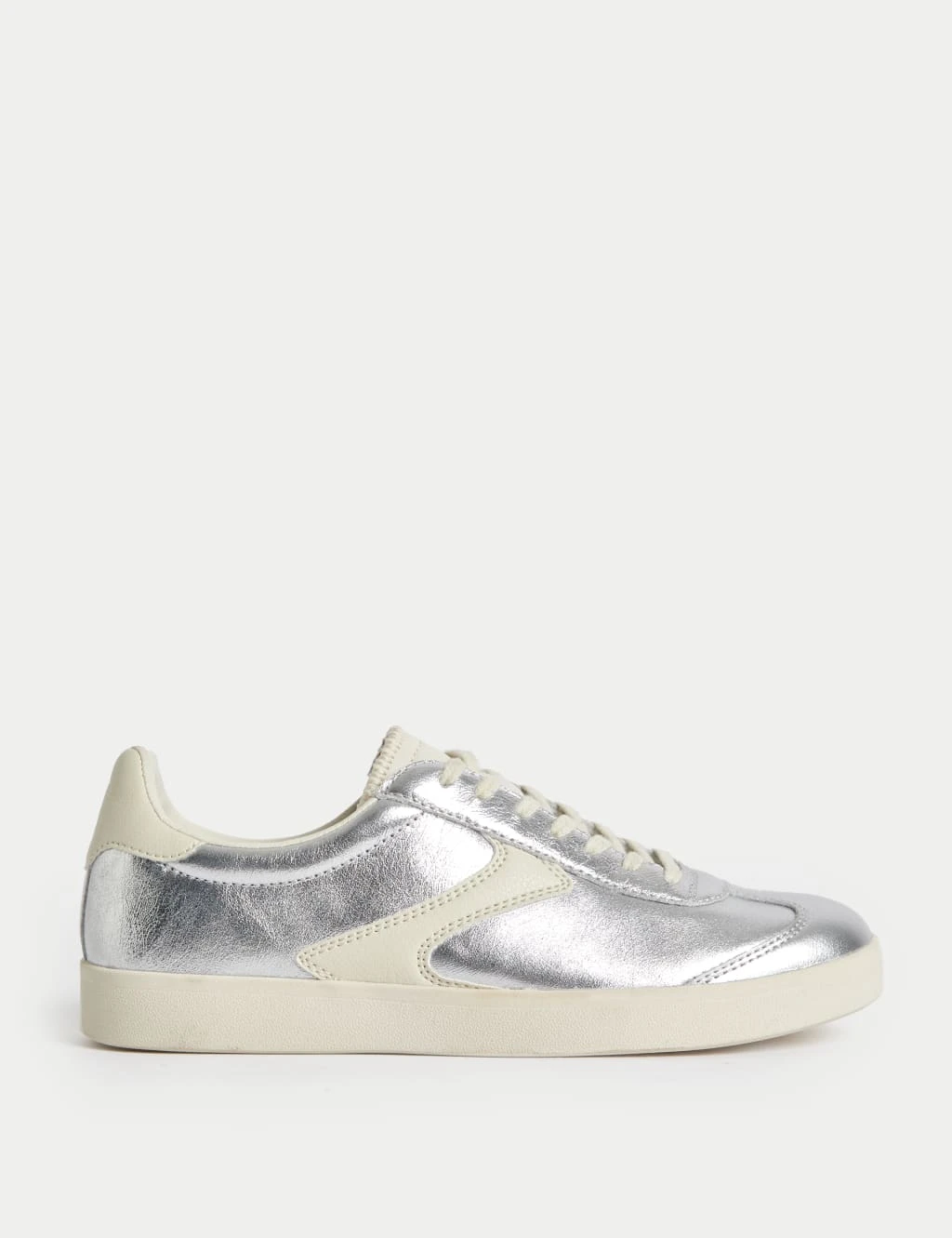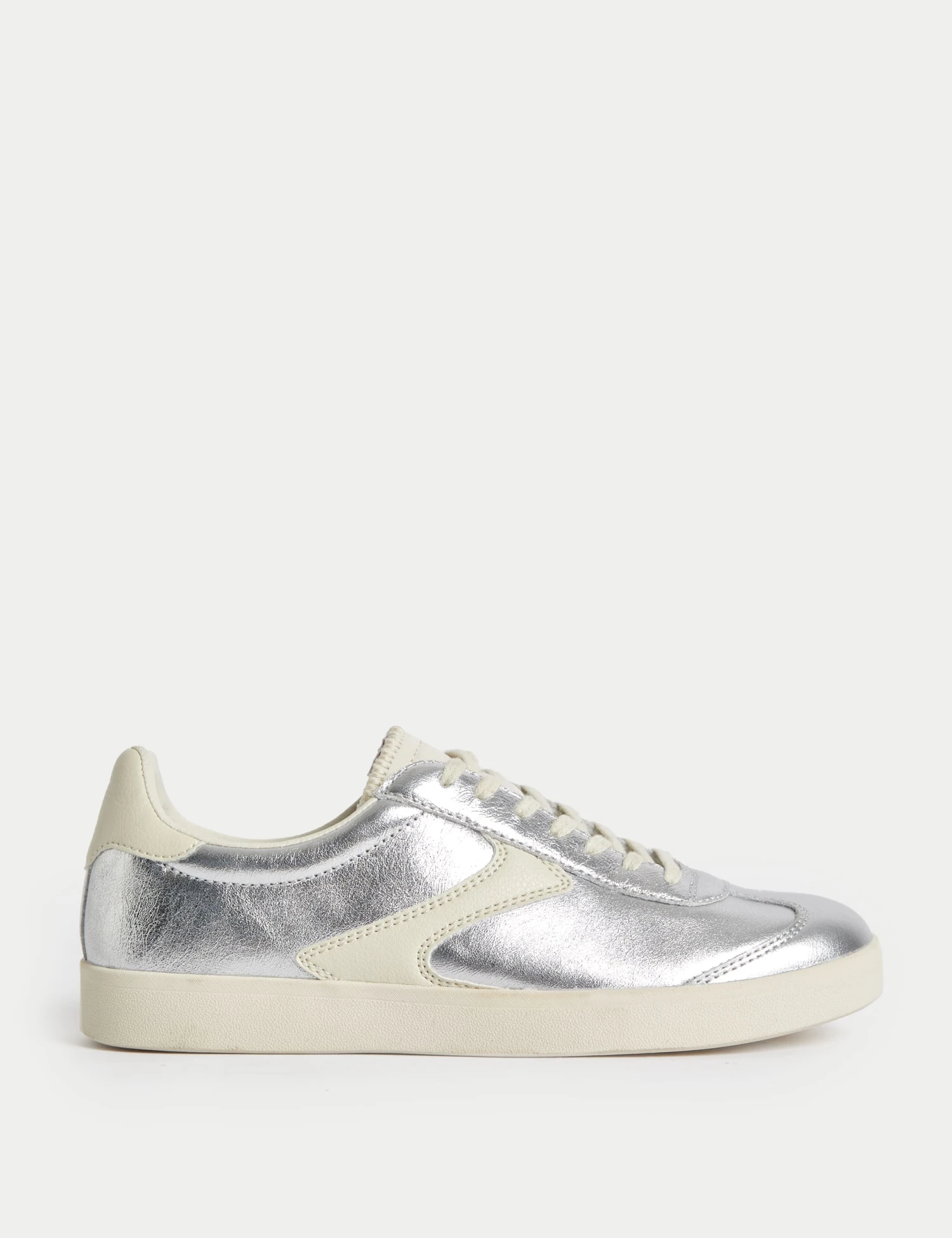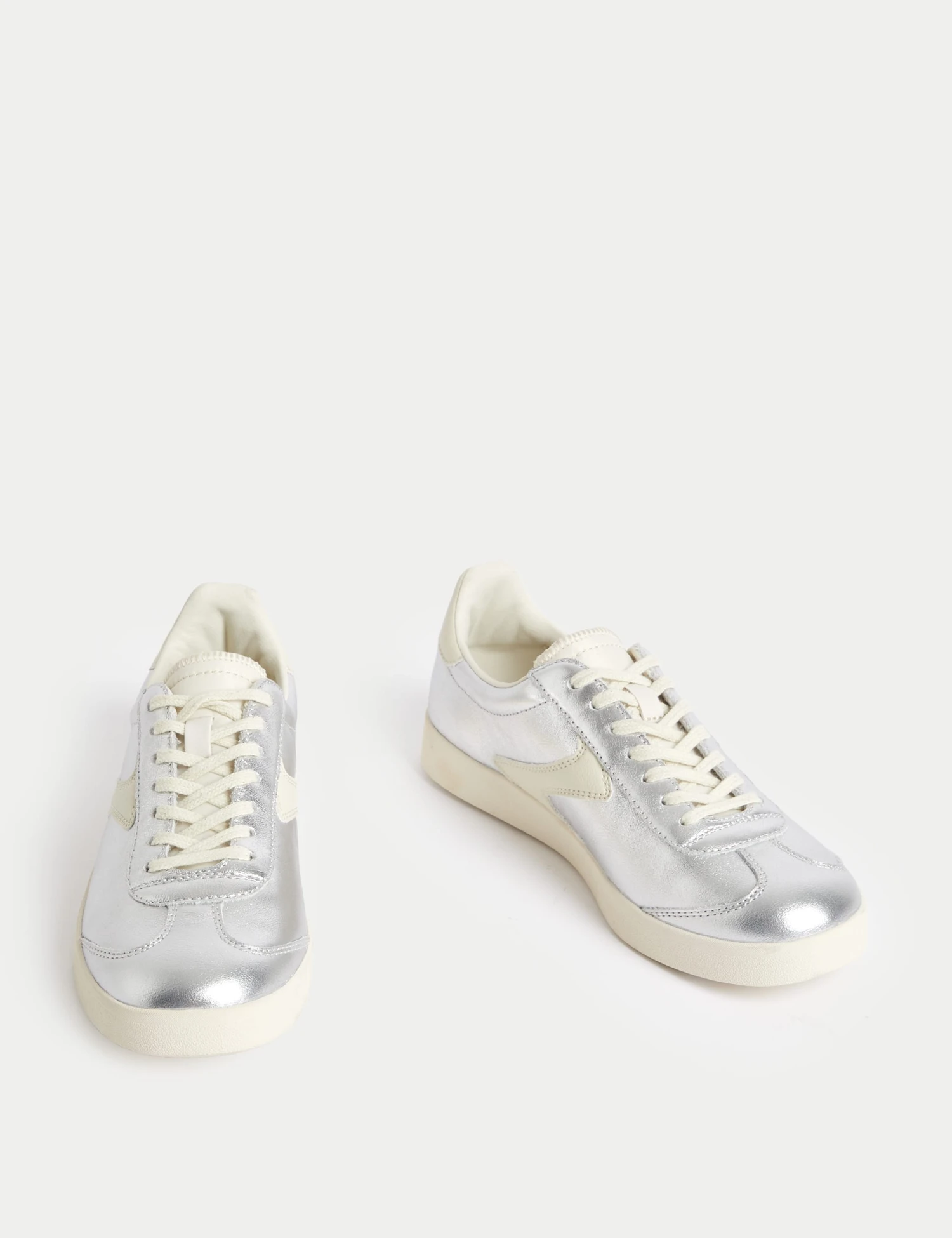 These chic leather trainers make a versatile addition to your casual footwear. Regular fit, with a flat cupsole and a lace-up fastening. Insolia Flex® technology ensures comfy wear by ensuring your foot is correctly placed. Antibacterial padding in the Freshfeet™ insole helps minimise odours. A side detail adds a stylish finishing touch. M&S Collection: easy-to-wear wardrobe staples that combine classic and contemporary styles.