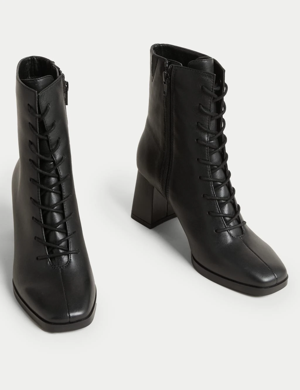 Put your best foot forward in these elegant leather ankle boots. They feature mid-height block heels for a contemporary look. Our innovative Insolia® technology redistributes weight away from the balls of your feet for improved comfort and stability. The lace-up design features a zip on the inner ankle to make them easy to pull on, while antibacterial padding keeps your footwear feeling fresh.