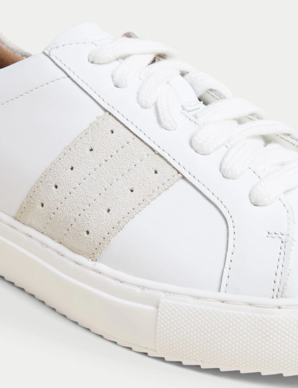 Get up and go in these leather lace up trainers. They have a sturdy flat heel for easy all-day wear. Smart Insolia Flex® technology ensures your foot is correctly placed within your shoes. Antibacterial padding helps them stay fresh. Made with responsibly sourced leather.
