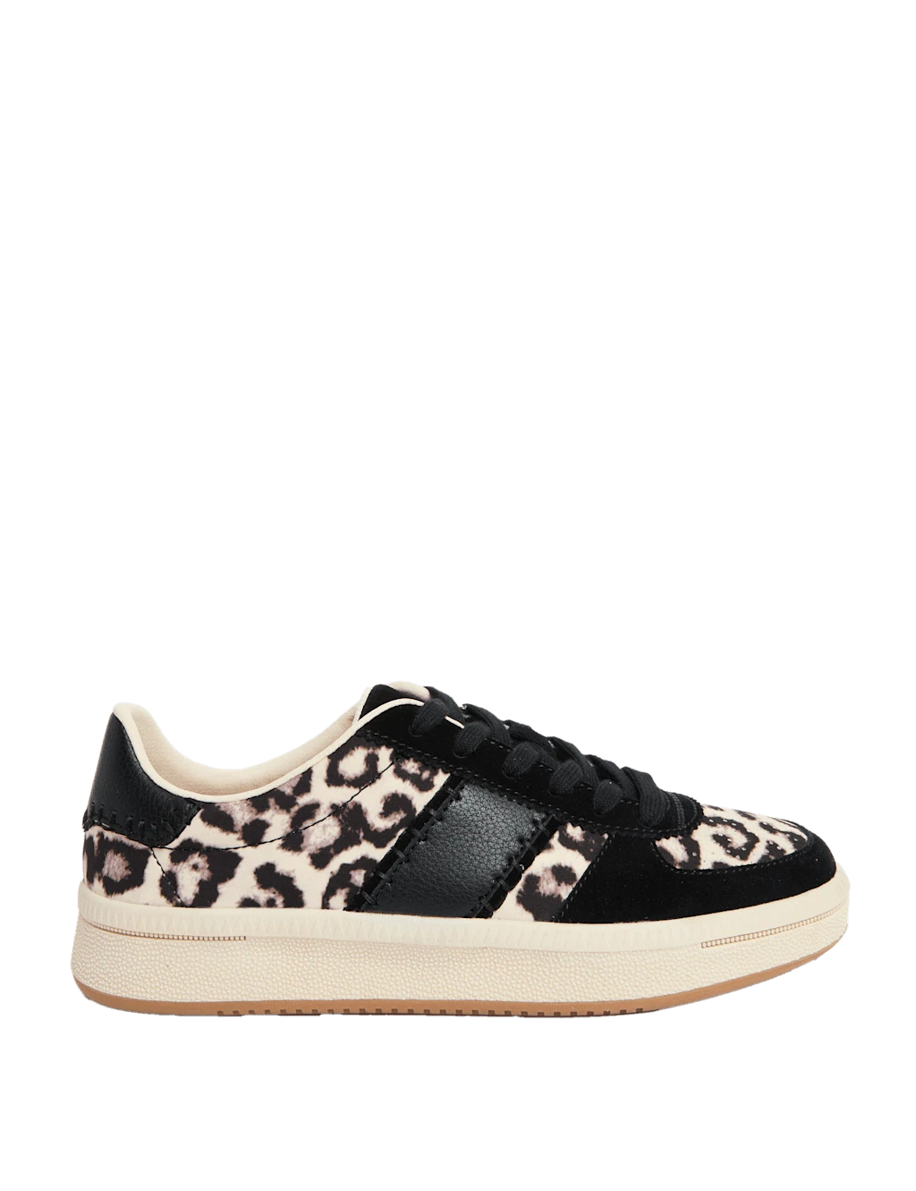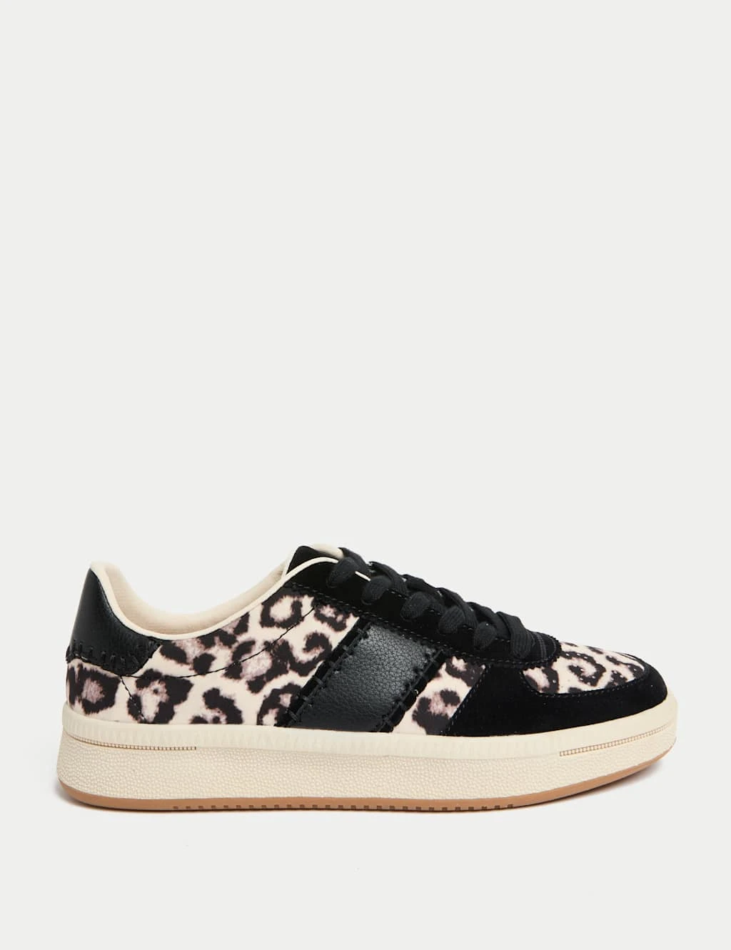 These leather trainers are a versatile addition to your footwear collection. They have a bold leopard print design and a platform sole for a statement look. Our Insolia Flex® technology improves the natural rotational movement of the ball of the foot for comfort and support, while antibacterial Freshfeet™ padding minimises odour. M&S Collection: easy-to-wear wardrobe staples that combine classic and contemporary styles.