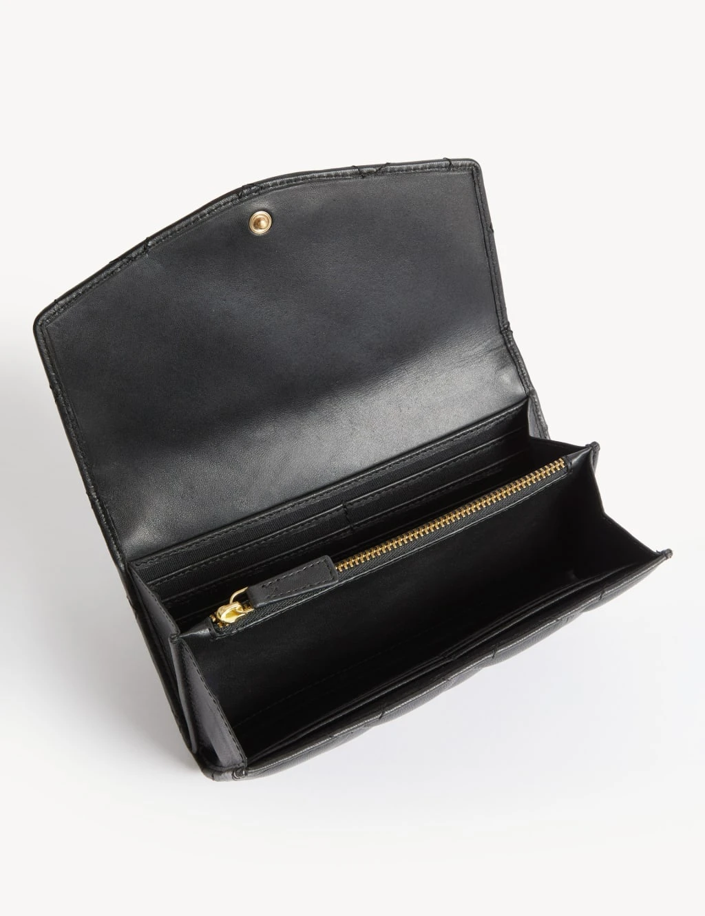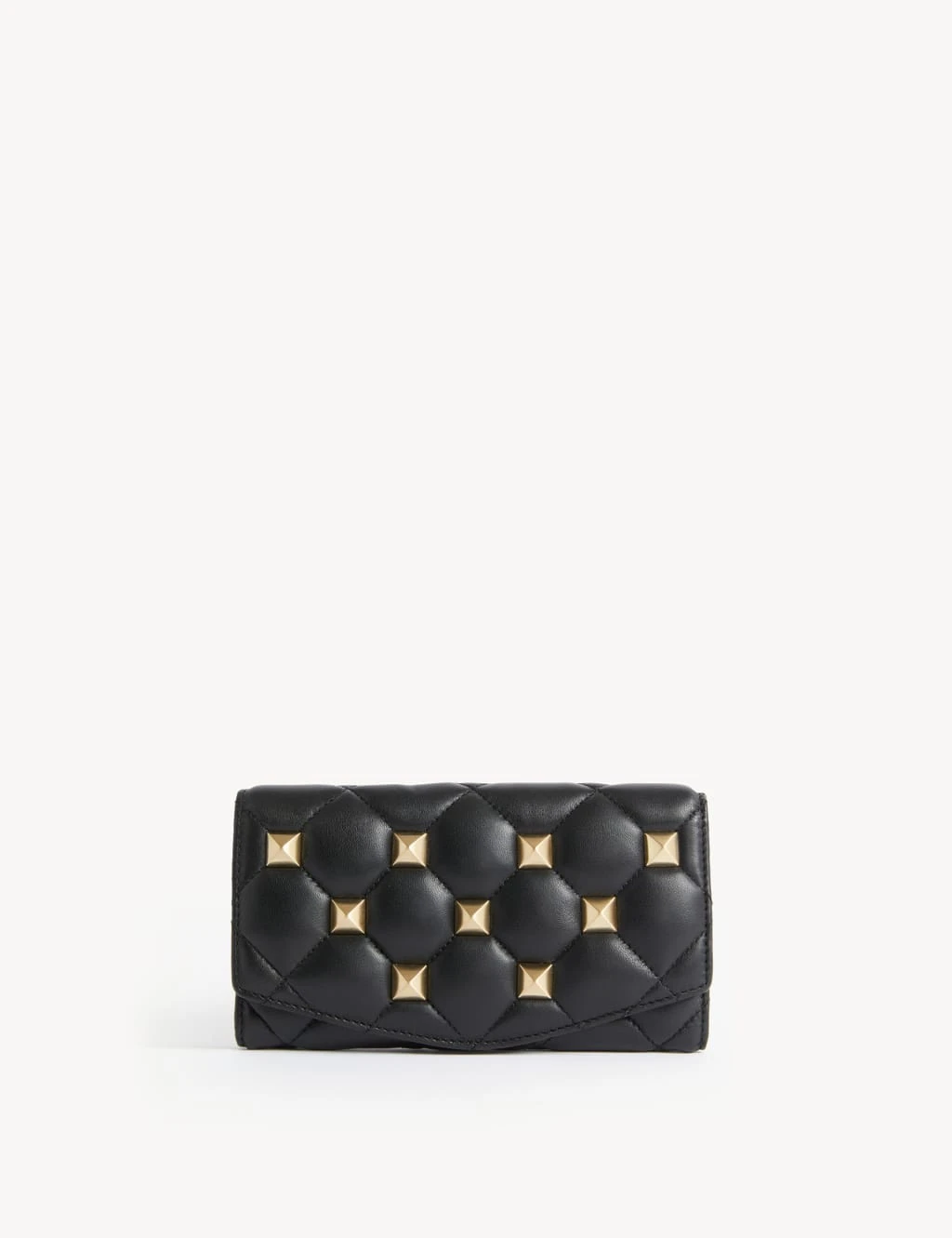 Store your cash and cards in style with this leather purse. An internal zip compartment, multiple card slots and an external zipped pocket on the back offer plenty of space while a press-stud fastening keeps it secure. The quilted, studded design on the front adds a glamorous touch. Made with responsibly sourced leather and recycled polyester lining.
