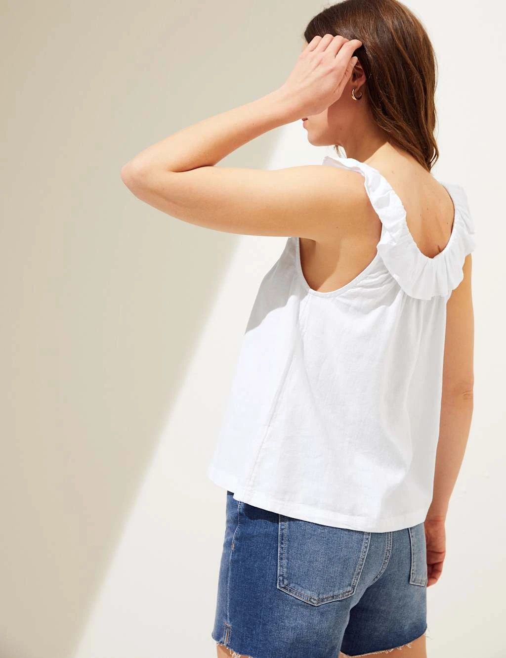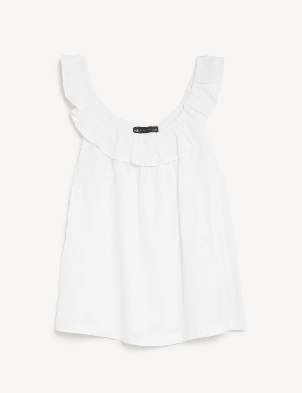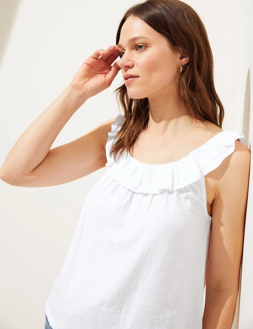 Bring easy elegance to your outfit with this vest, made from an airy linen blend. Cut in a flattering regular fit, with an eye-catching ruffle detail for a chic finish.