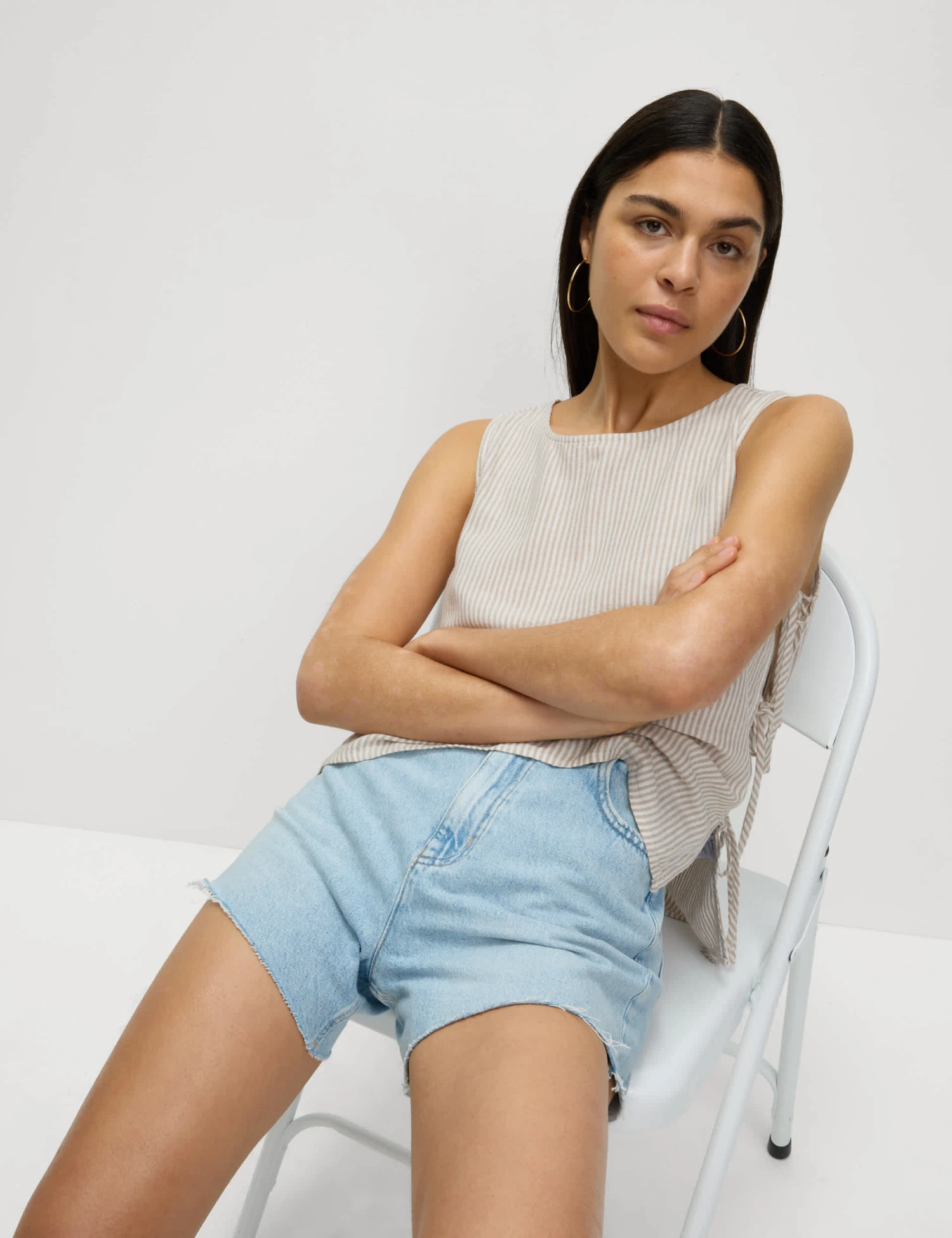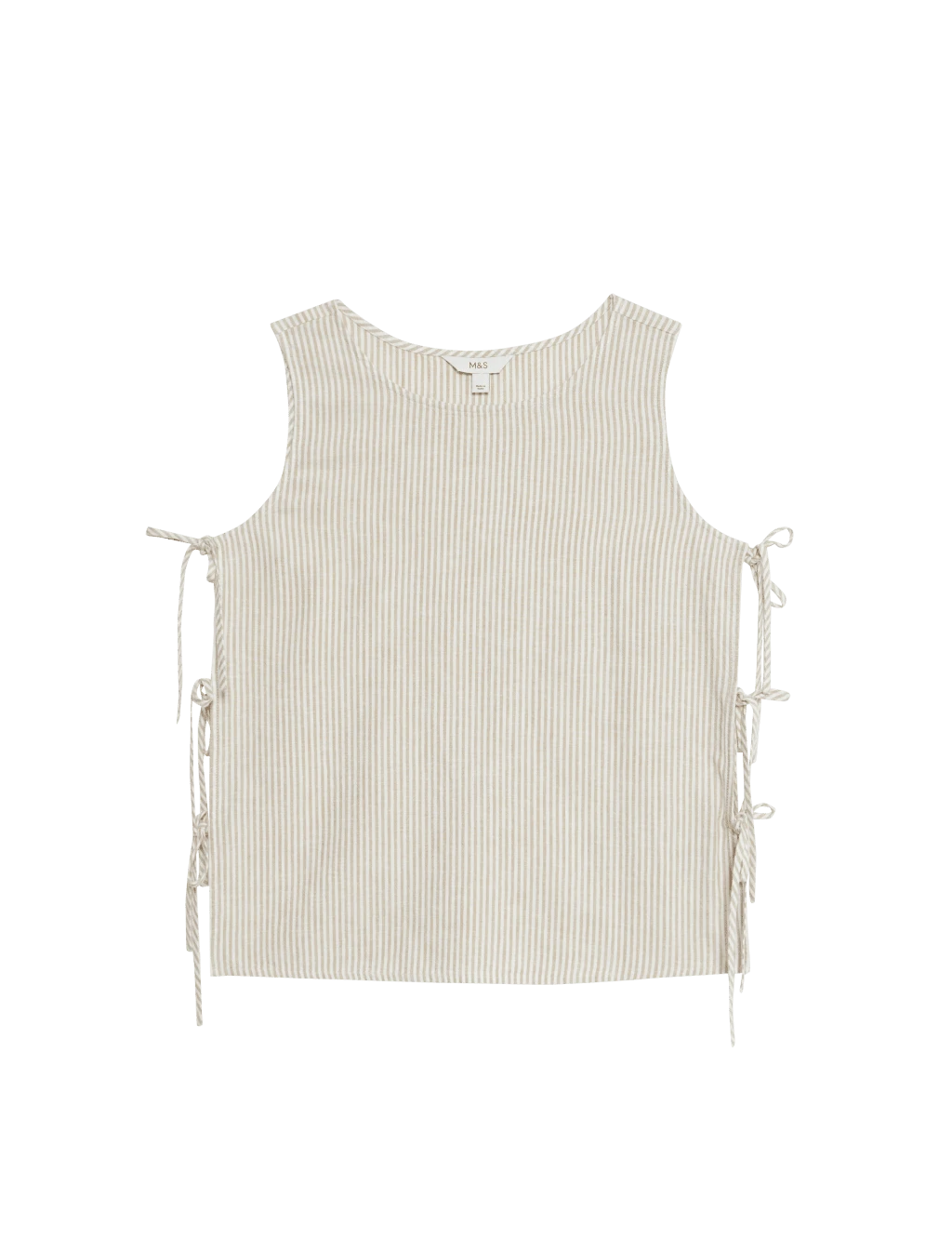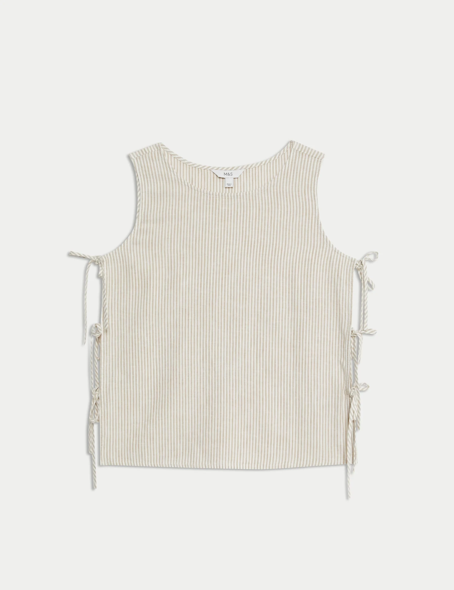 This modern vest is made from linen-rich fabric to provide a breathable feel, perfect for warm holiday days. Regular fit, featuring an easy round neck and an all-over print for a timeless look. Complete with a tie detail at the side to give a neat finish.M&S Collection: easy-to-wear wardrobe staples that combine classic and contemporary styles.