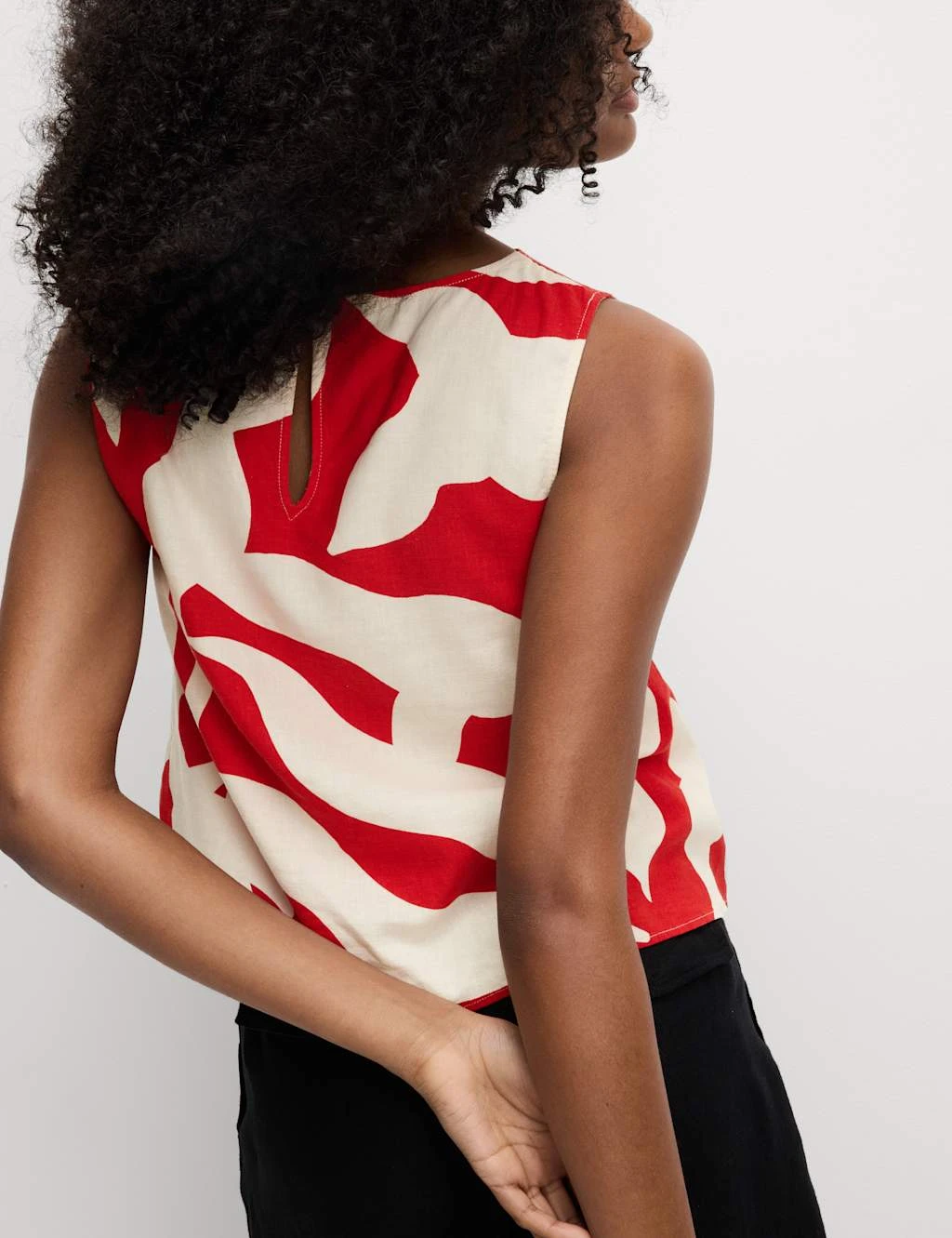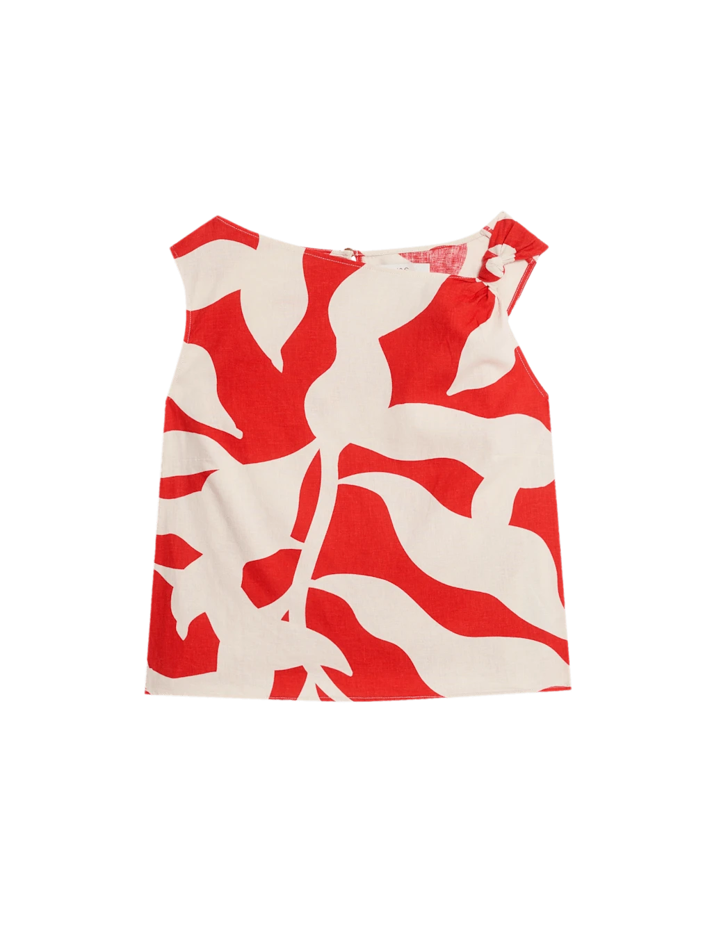 Made from linen-rich fabric, this breathable top is the ideal choice on sunny days. Regular fit, featuring a pretty all-over print and a twist design at the one-shoulder neckline for a flattering effect. Finished with an easy sleeveless shape and a neat button fastening at the back. M&S Collection: easy-to-wear wardrobe staples that combine classic and contemporary styles.
