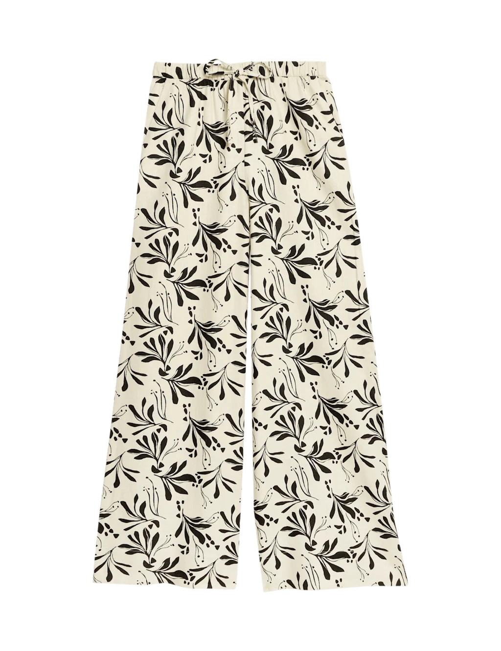 These printed linen-rich trousers give you a breezy feel on warm days. They’ve got an easy wide-leg fit, with a flattering high waist and comfy drawstring fastening. Hip pockets add a practical touch. M&S Collection: easy-to-wear wardrobe staples that combine classic and contemporary styles.