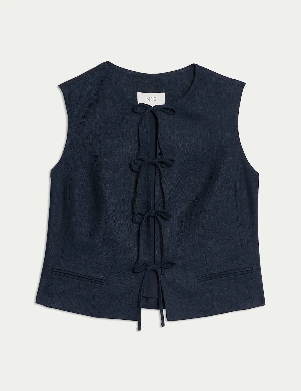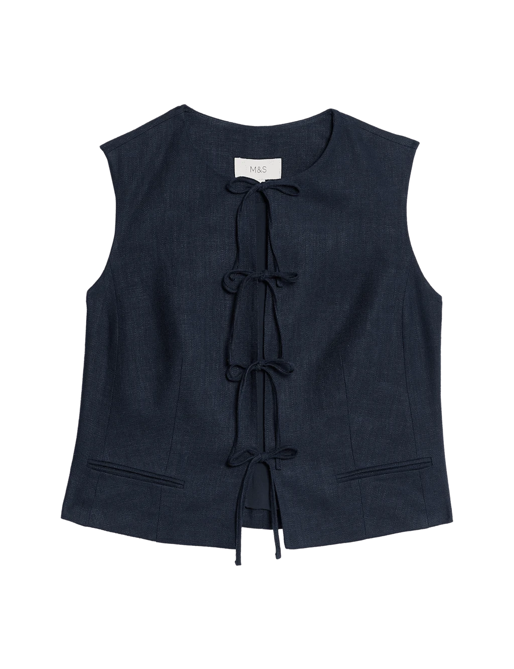 Elevate your smart style with this linen-rich waistcoat. Cut in a regular fit, it features a front tie for a flattering, adjustable shape. The timeless v-neckline brings an elegant, polished finish to any outfit. M&S Collection: easy-to-wear wardrobe staples that combine classic and contemporary styles.