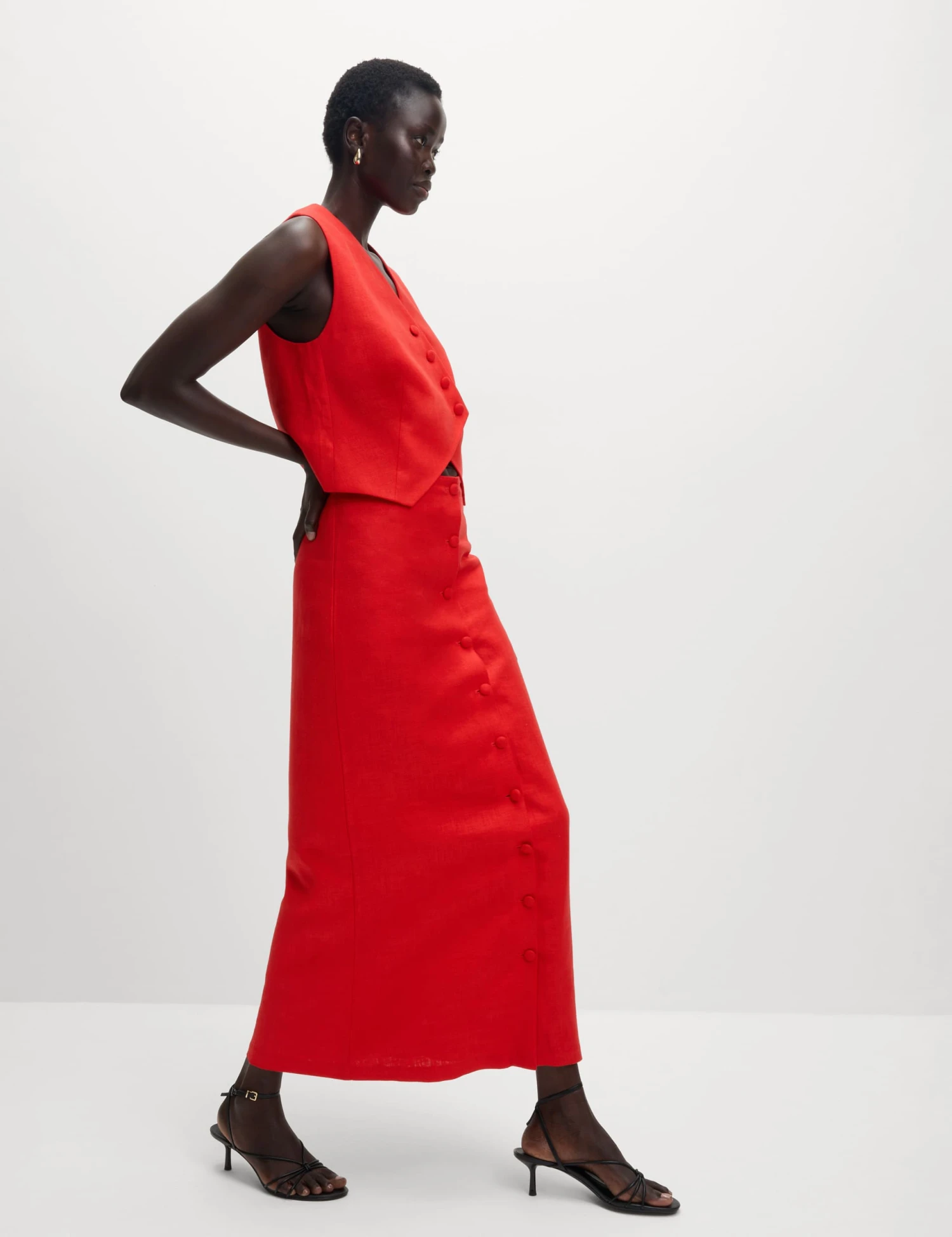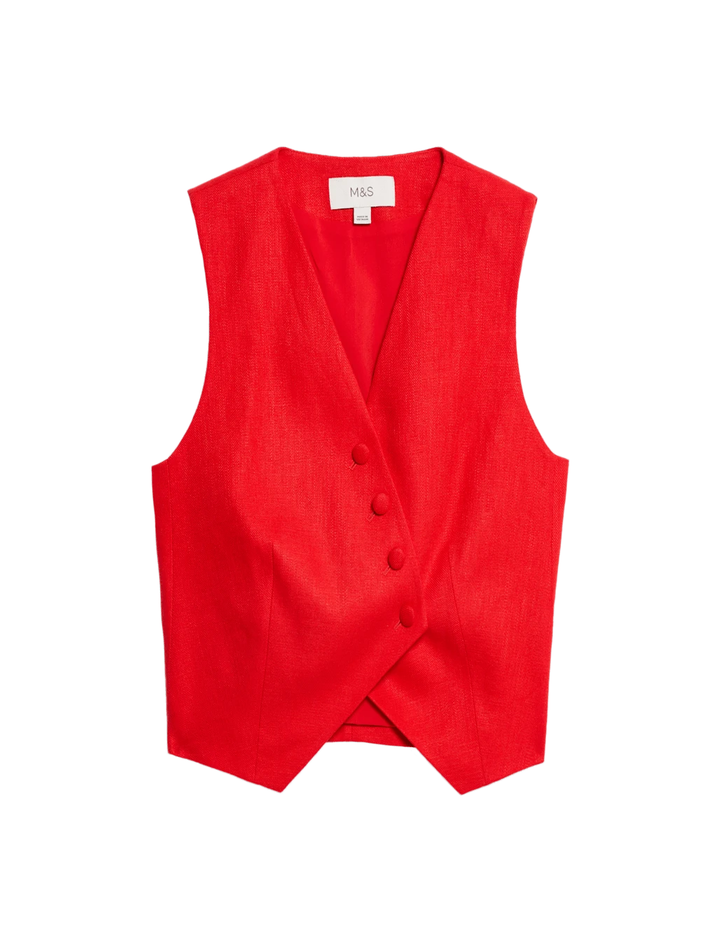 This waistcoat is crafted from linen-rich twill to create a comfy feel. Easy regular fit, featuring an asymmetric front and a v-neckline for a feminine aesthetic. Texture in the material gives a refined touch. Complete with four neat buttons at the front. M&S Collection: easy-to-wear wardrobe staples that combine classic and contemporary styles.