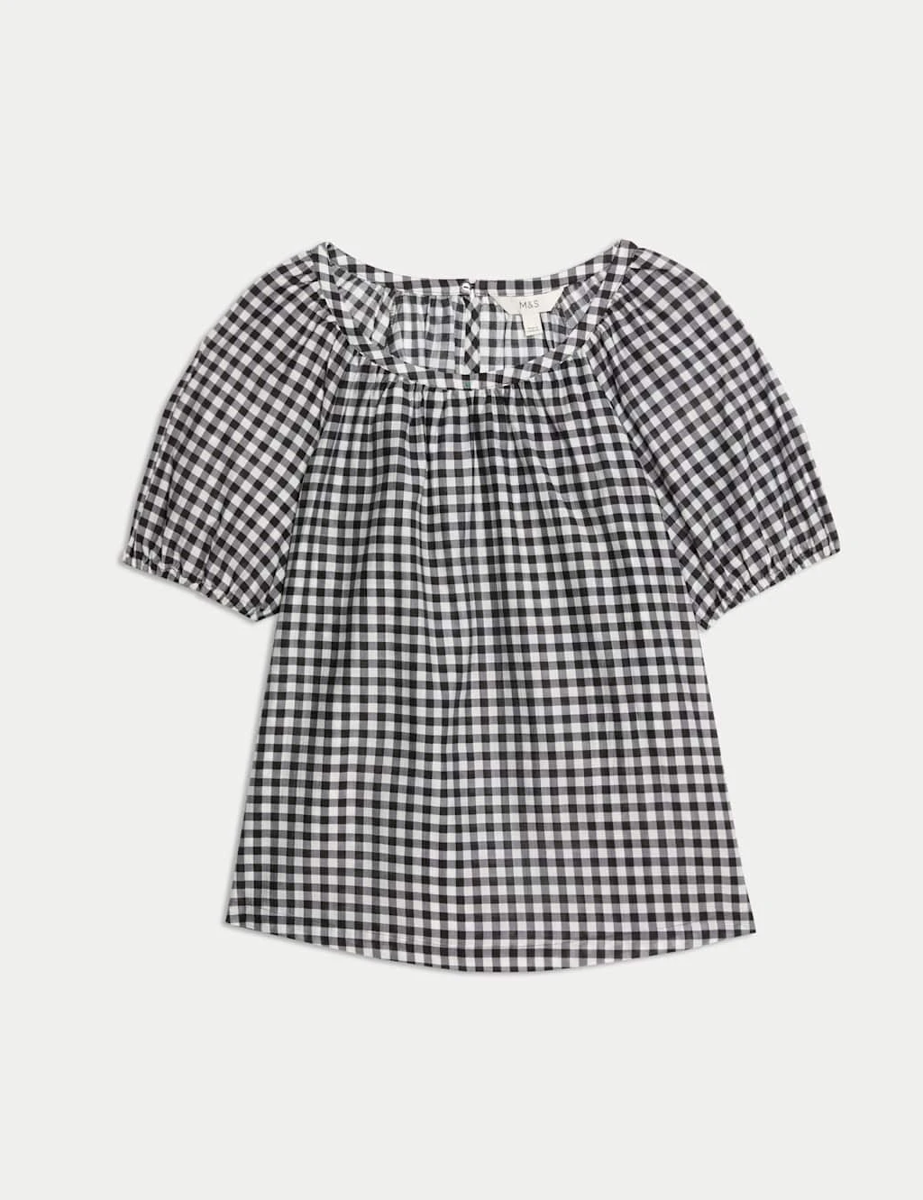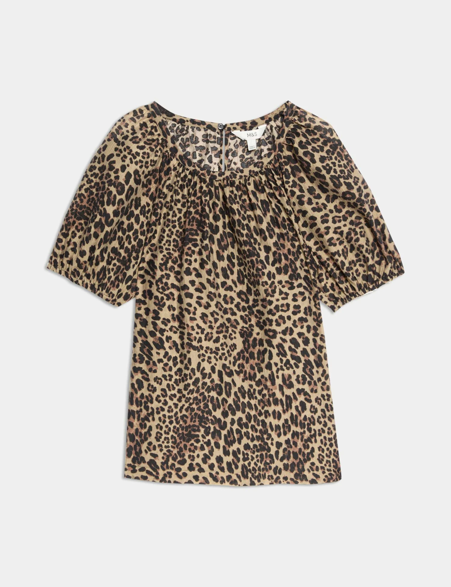 This Lyocell™-rich blouse is a versatile hero for your wardrobe. Cut in a regular fit, it features a breezy crew neckline and a neat button-through front for effortless style. The short puff sleeves add a hint of volume, while the all-over print delivers a playful, eye-catching finish. M&S Collection: easy-to-wear wardrobe staples that combine classic and contemporary styles.