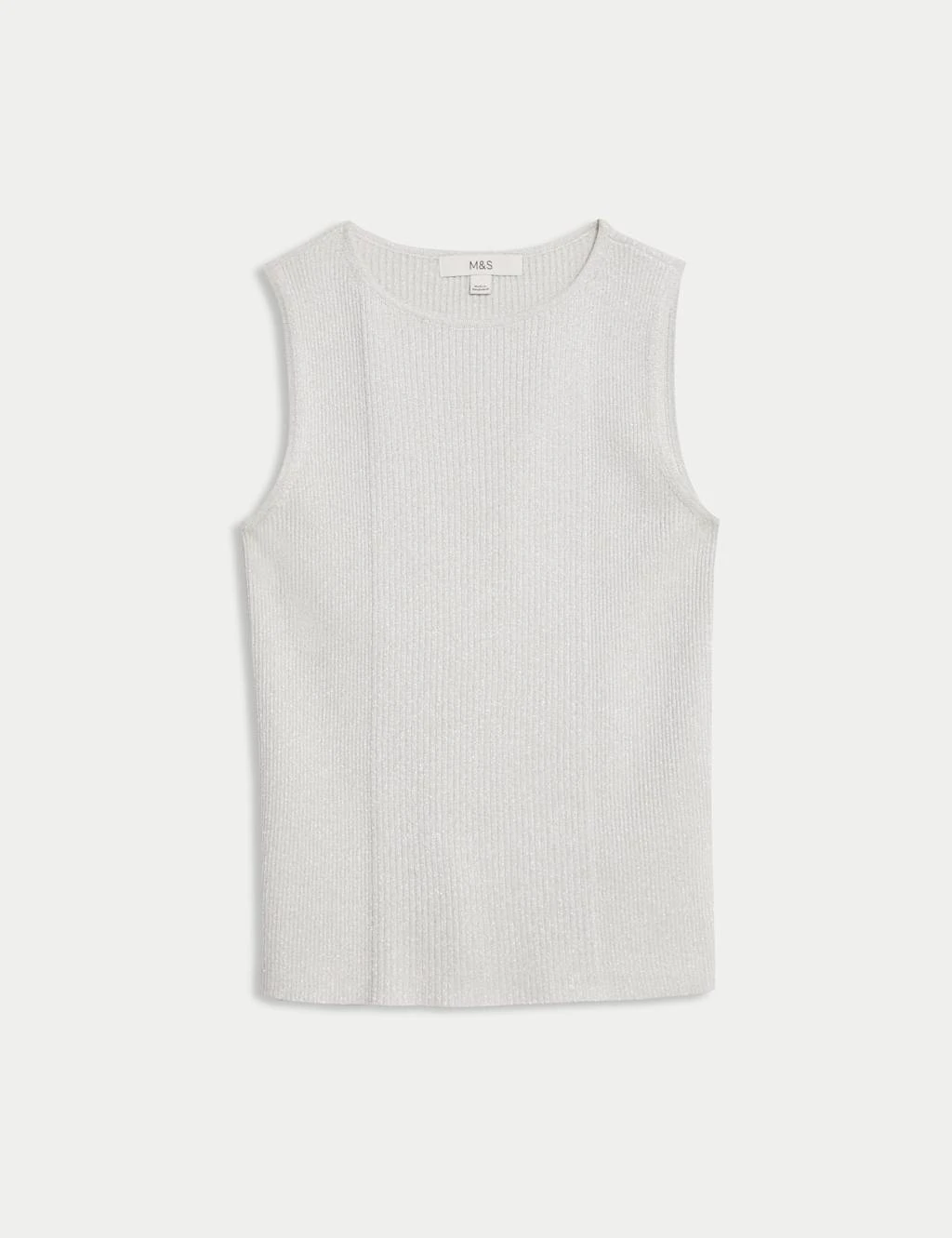 A touch of metallic yarn brings a subtle sparkle to this knitted vest top. It’s designed in a flattering slim fit, with a timeless crew neckline and a stylish cropped length. M&S Collection: easy-to-wear wardrobe staples that combine classic and contemporary styles.