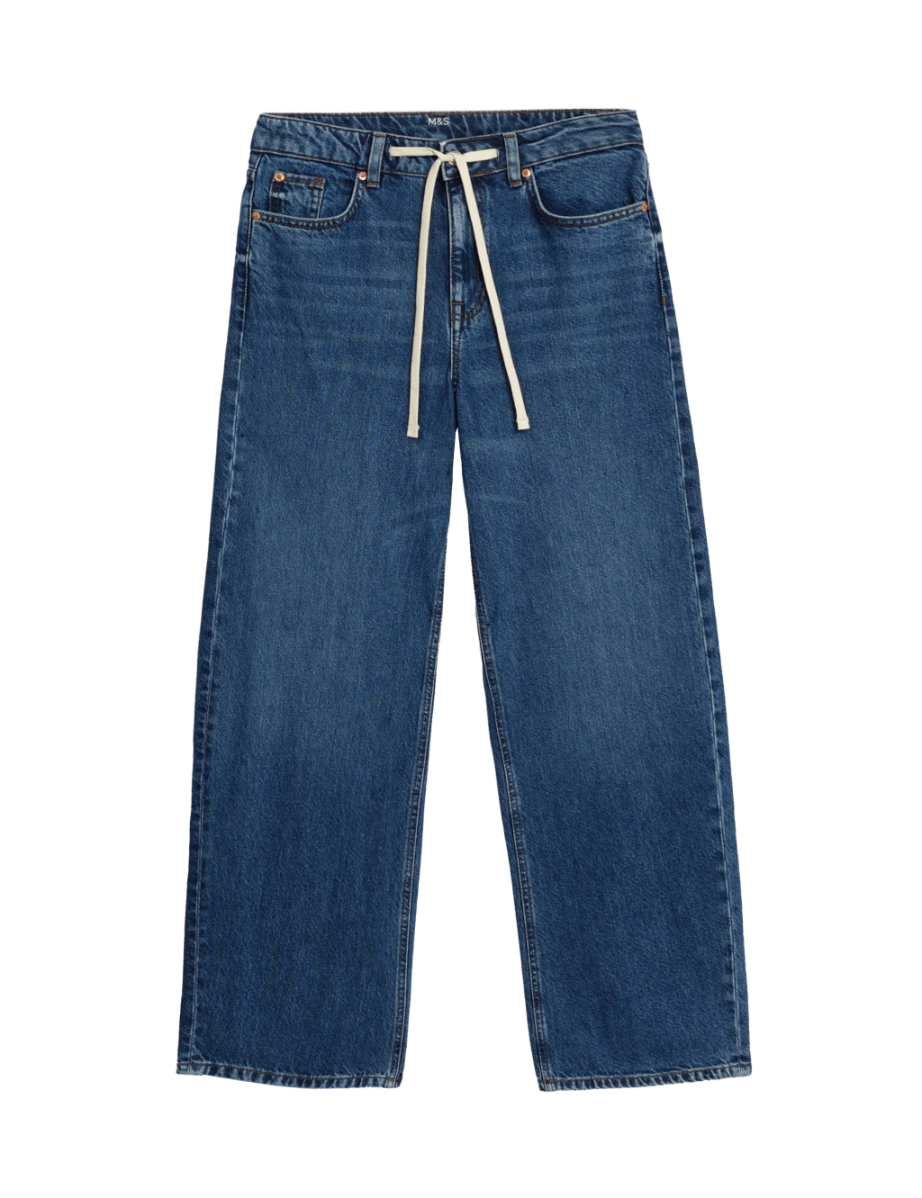 These wide-leg jeans are crafted from pure cotton denim with a touch of lightweight lyocell for extra comfort. They’re designed in a slouchy mid-rise fit, with a self-tie belt at the waist. Handy side pockets and patch pockets on the back complete the versatile style. M&S Collection: easy-to-wear wardrobe staples that combine classic and contemporary styles.