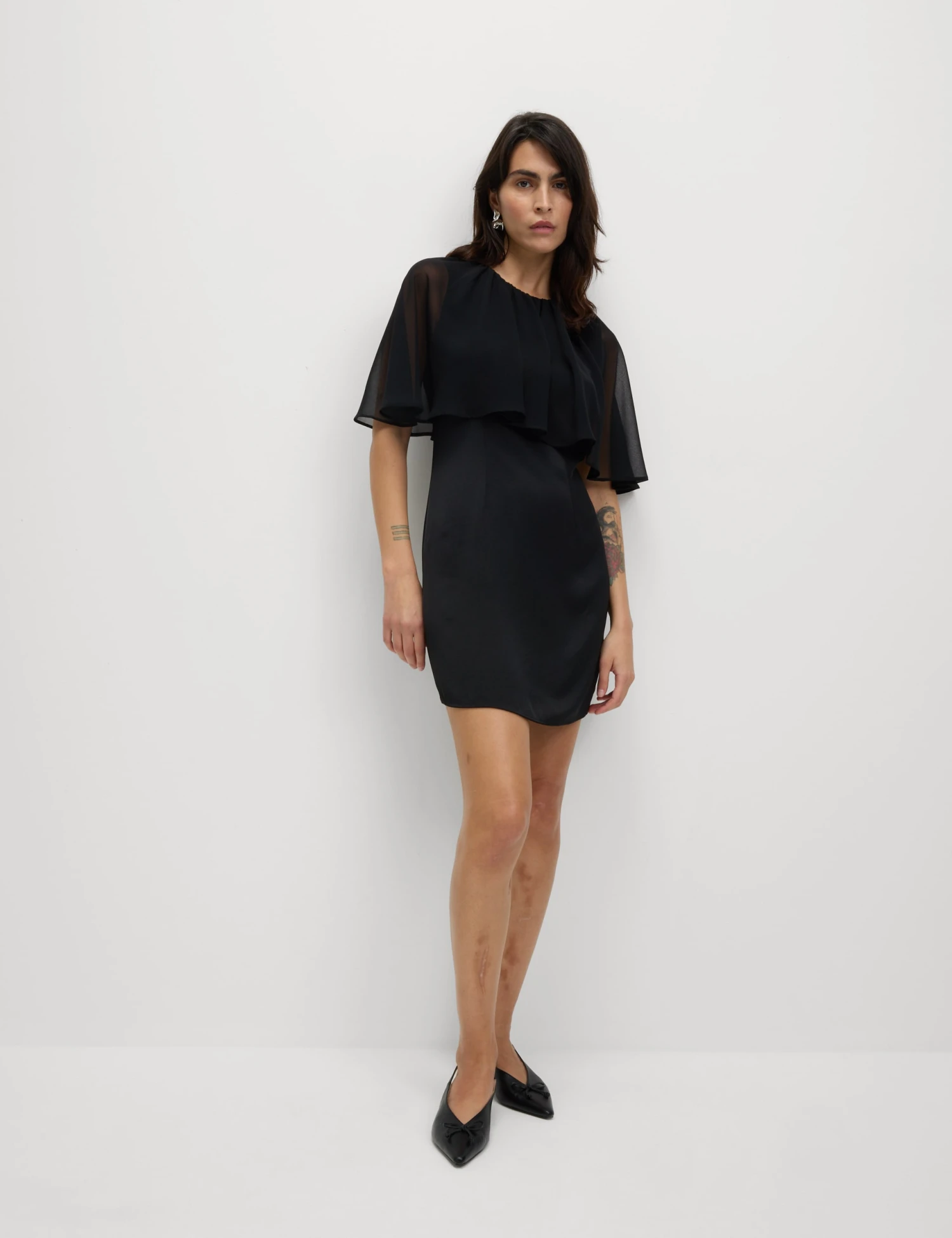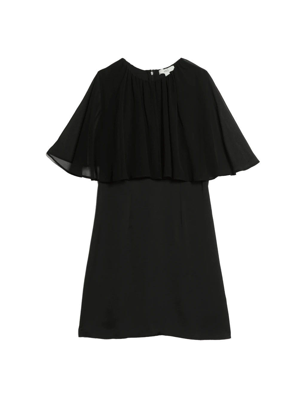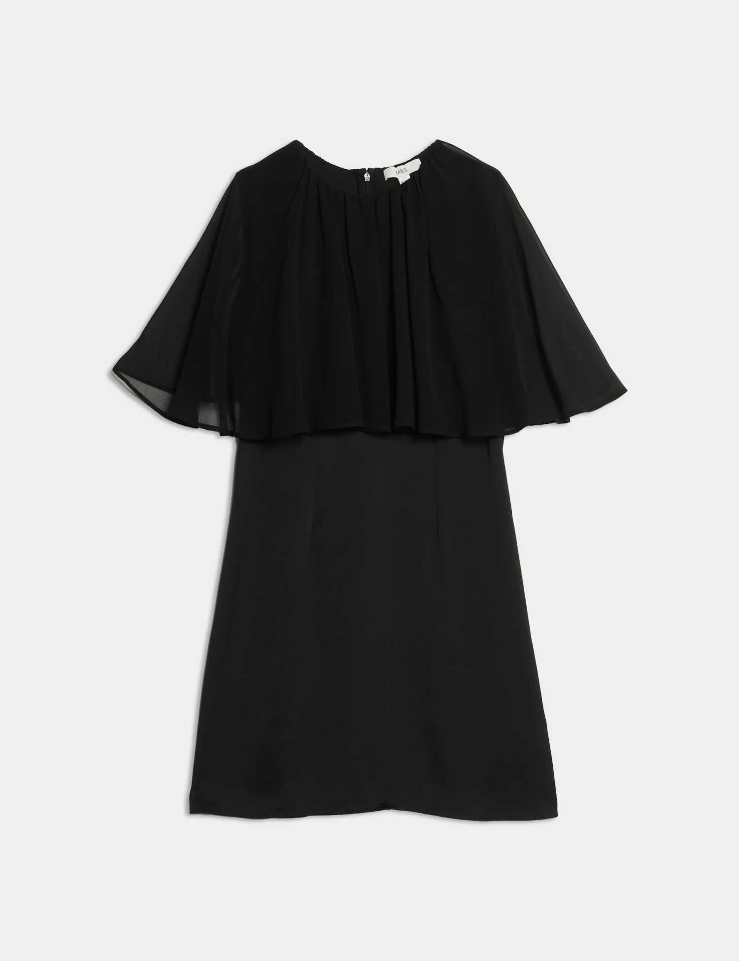 Add a touch of drama to your occasionwear with this elegant shift dress. It’s designed in a regular fit, with a mini-length hem and a timeless round neckline. A cape overlay brings a graceful feel to the short-sleeved bodice. The piece is lined for comfort and finished with a neat zip fastening at the back. M&S Collection: easy-to-wear wardrobe staples that combine classic and contemporary styles.