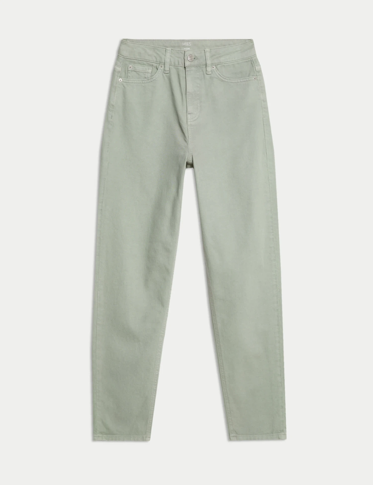These cotton-rich jeans are an everyday wardrobe staple with a modern feel. The pair have a flattering mom fit, a high waistband and a tapered leg that finishes at the ankle. Added stretch in the denim offers extra comfort. Five pockets for your essentials and a button and zip fly add authentic details. M&S Collection: easy-to-wear wardrobe staples that combine classic and contemporary styles.