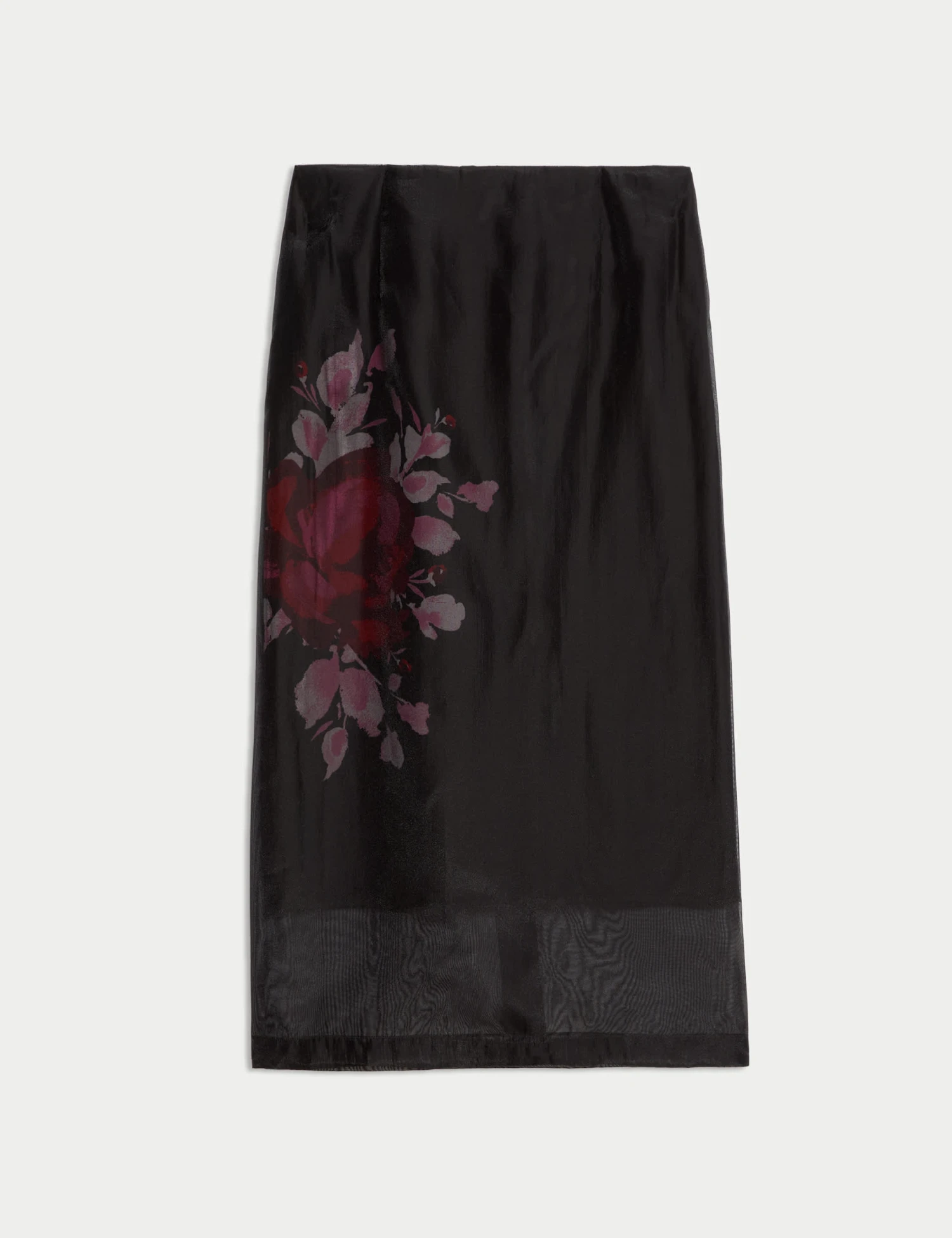 This modern skirt is crafted from organza fabric, making it a sophisticated choice on special occasions. It’s cut in a flattering pencil shape, with an all-over floral print for a feminine feel. The midi length gives a timeless look. A zip fastening at the back and part lining complete the comfortable piece. M&S Collection: easy-to-wear wardrobe staples that combine classic and contemporary styles.