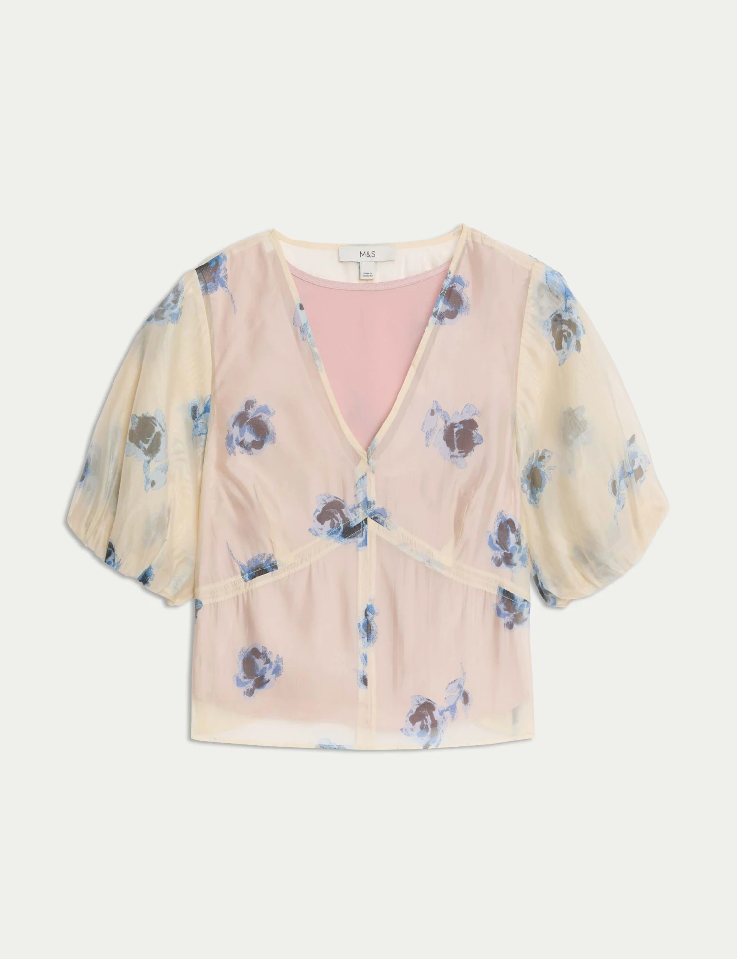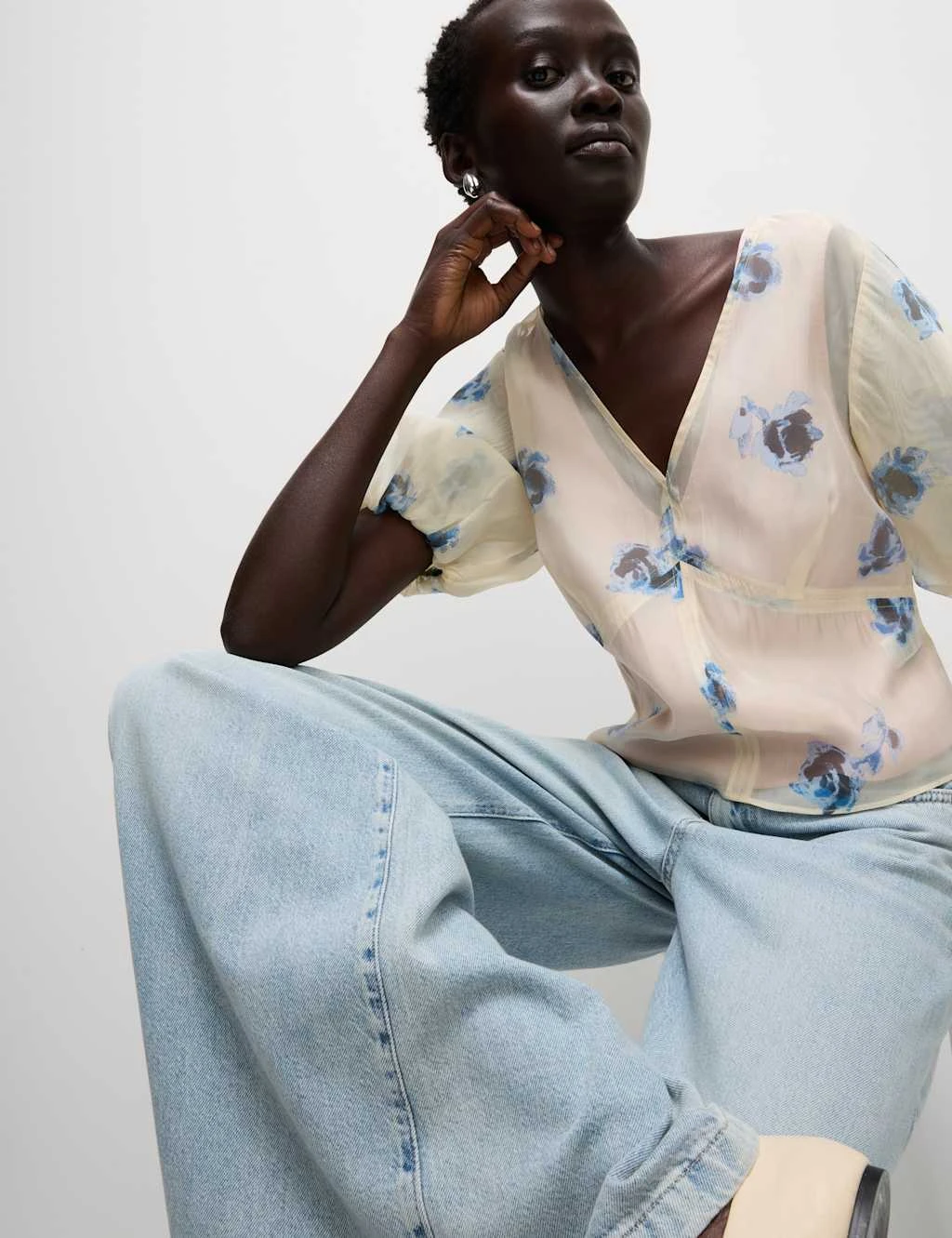 Made from sheer organza with a dreamy floral print, this blouse has a modern, romantic feel. It’s cut to a regular fit with a lined bodice and a v-neckline. Short puff sleeves add an extra feminine flourish to the silhouette. M&S Collection: easy-to-wear wardrobe staples that combine classic and contemporary styles.