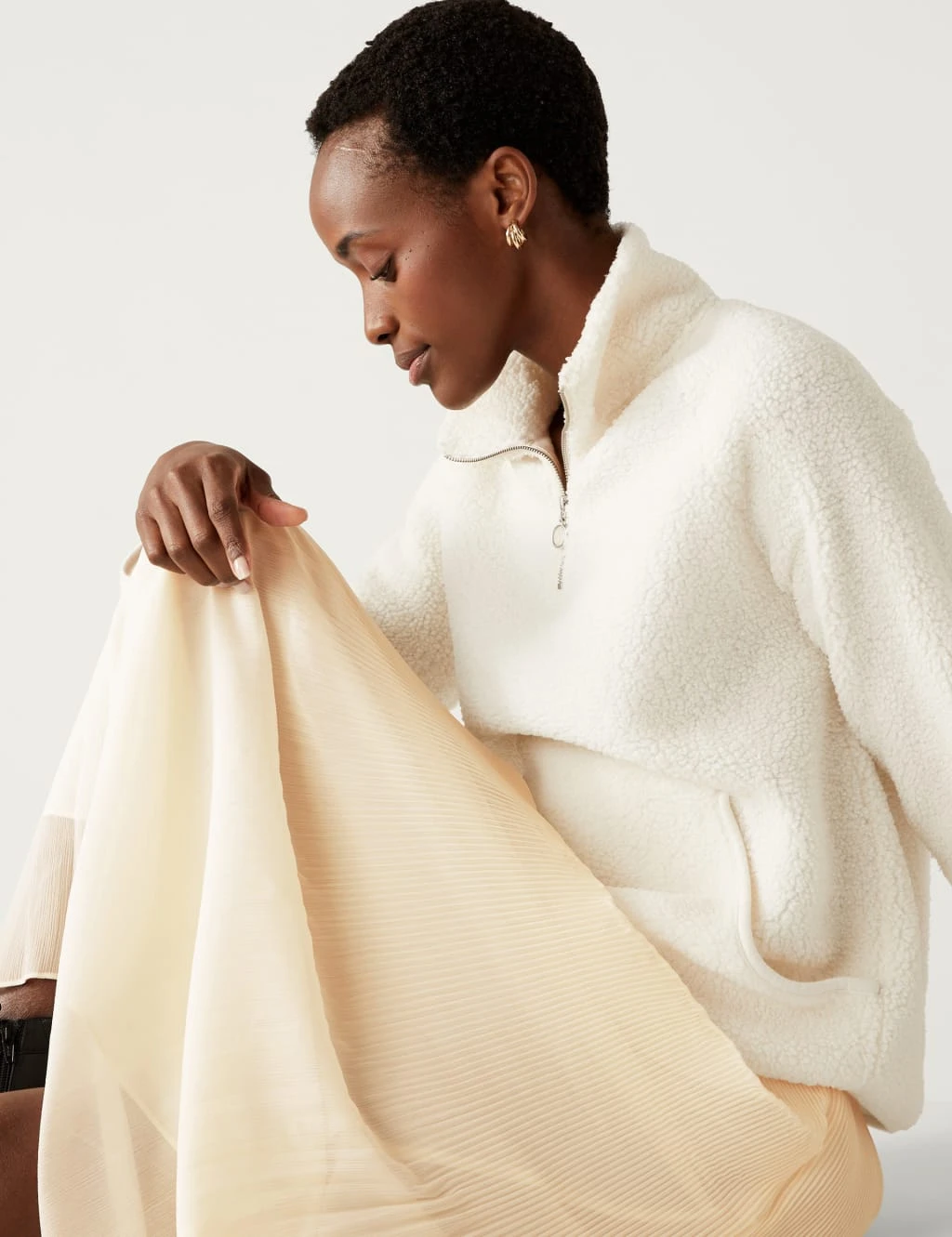 Sophisticated plisse fabric gives this skirt a timeless look. It’s cut to a regular fit, and falls to a midaxi length. Narrow pleats through the top half give way to looser folds for an extra-swishable feel. A full lining beneath the sheer fabric ensures your modesty.