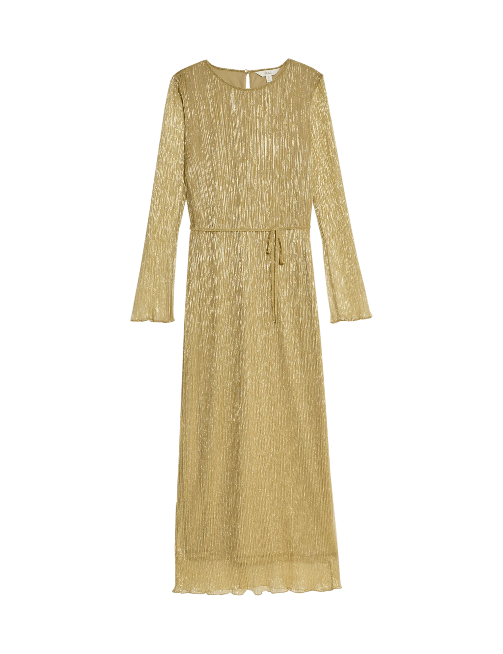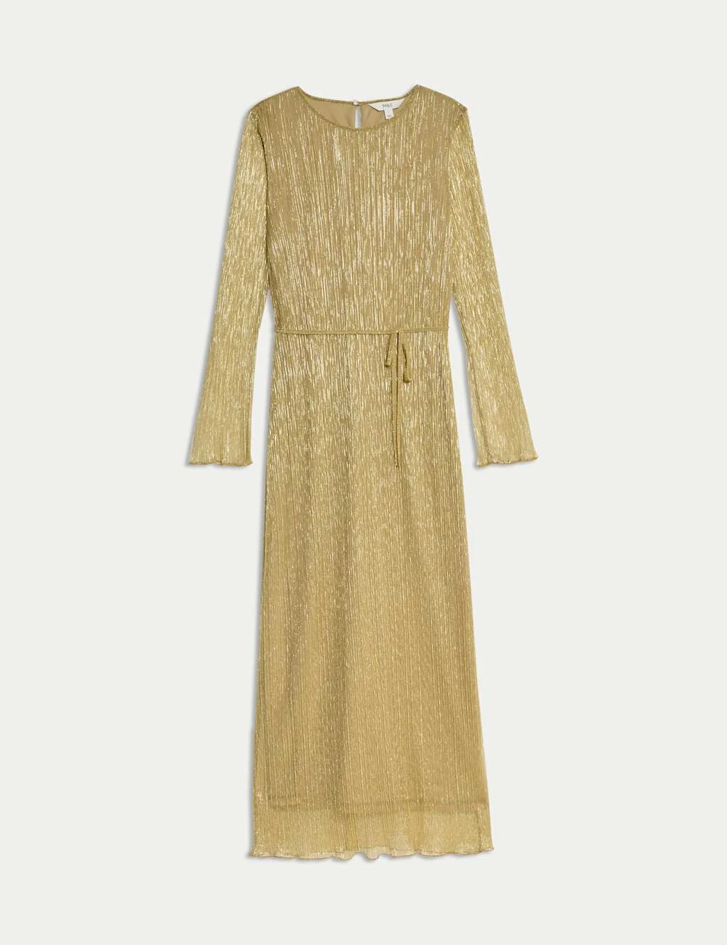 Shimmer and shine in this sparkly plissé dress – perfect for party season. Cut in a regular fit, its sleek column shape skims the body for an effortlessly elegant silhouette. A round neckline, long sleeves and a neat button fastening at the back complete the refined look. M&S Collection: easy-to-wear wardrobe staples that combine classic and contemporary styles.