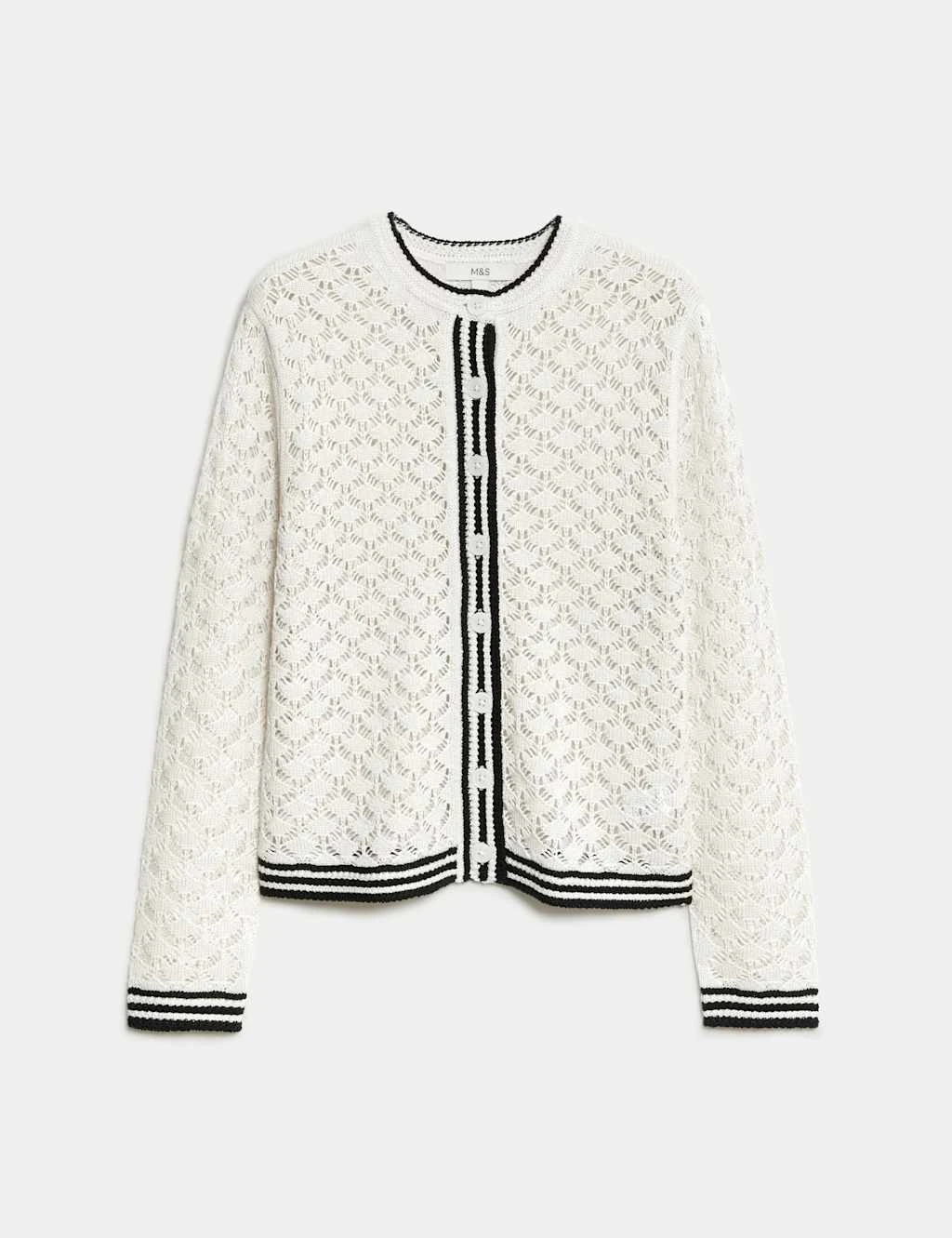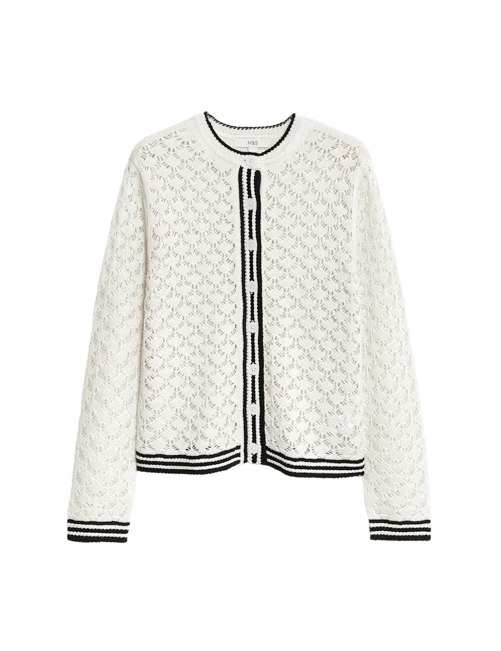 This cardigan is a versatile addition to your wardrobe. It’s made in a regular fit, with a timeless crew neckline and a flattering short length. The textured knit and contrast tipping add stylish detail. It’s finished with a neat button-through fastening. M&S Collection: easy-to-wear wardrobe staples that combine classic and contemporary styles.