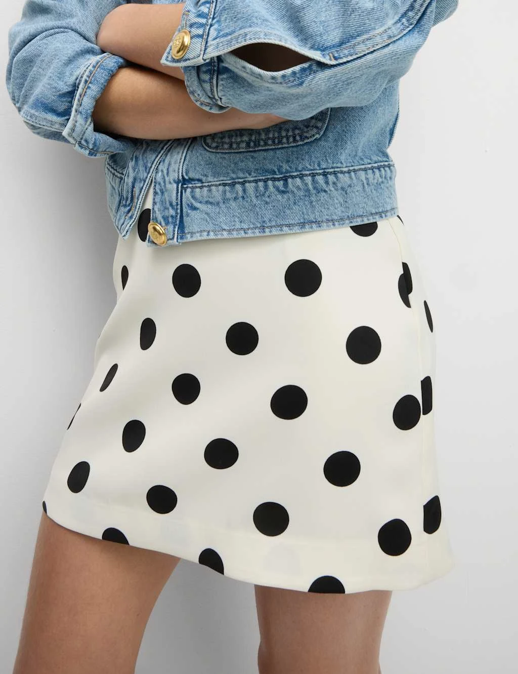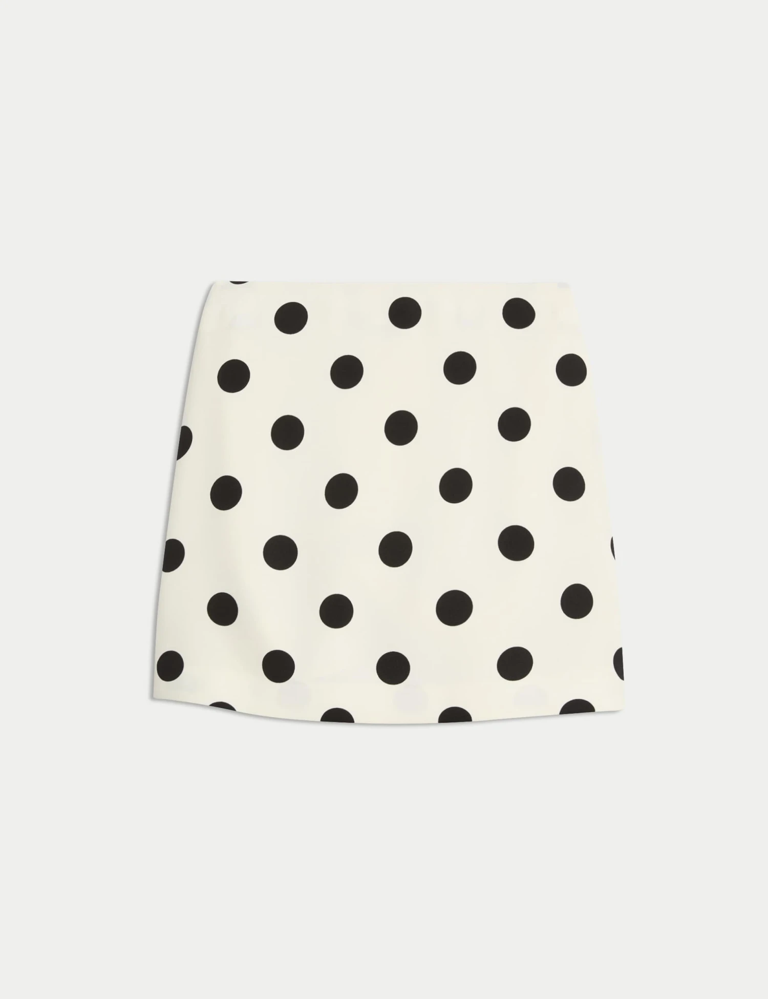 This polka dot mini skirt is a playful addition to your wardrobe. The design has a flattering A-line silhouette. A hidden zip and button at the back fastens the piece neatly. M&S Collection: easy-to-wear wardrobe staples that combine classic and contemporary styles.