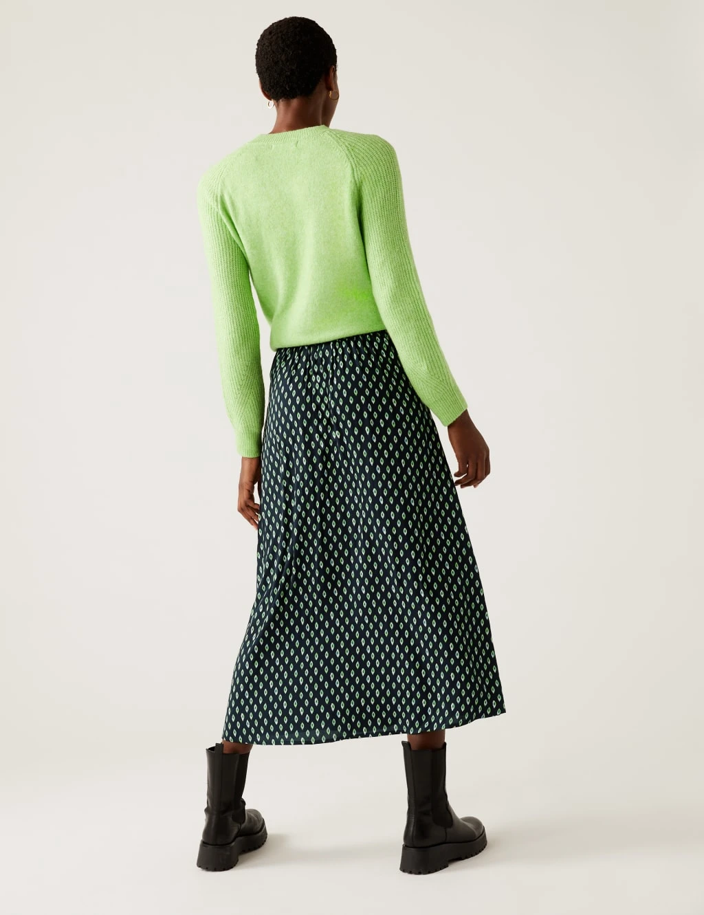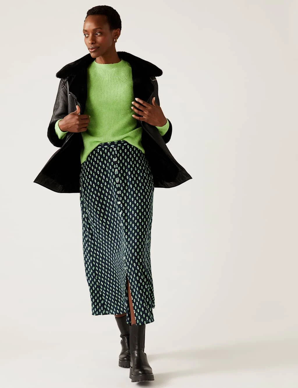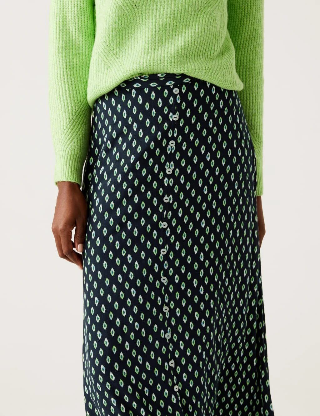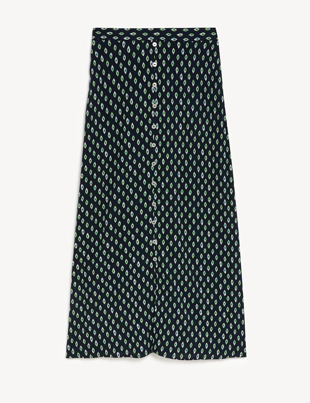 Offering a dash of contemporary style, this printed A-line skirt will see you from weekdays to weekends. It’s cut in a regular fit with an elasticated waist for comfort. This piece falls to a versatile midaxi length and is finished with non-functional buttons on the centre seam for a dash of detail.