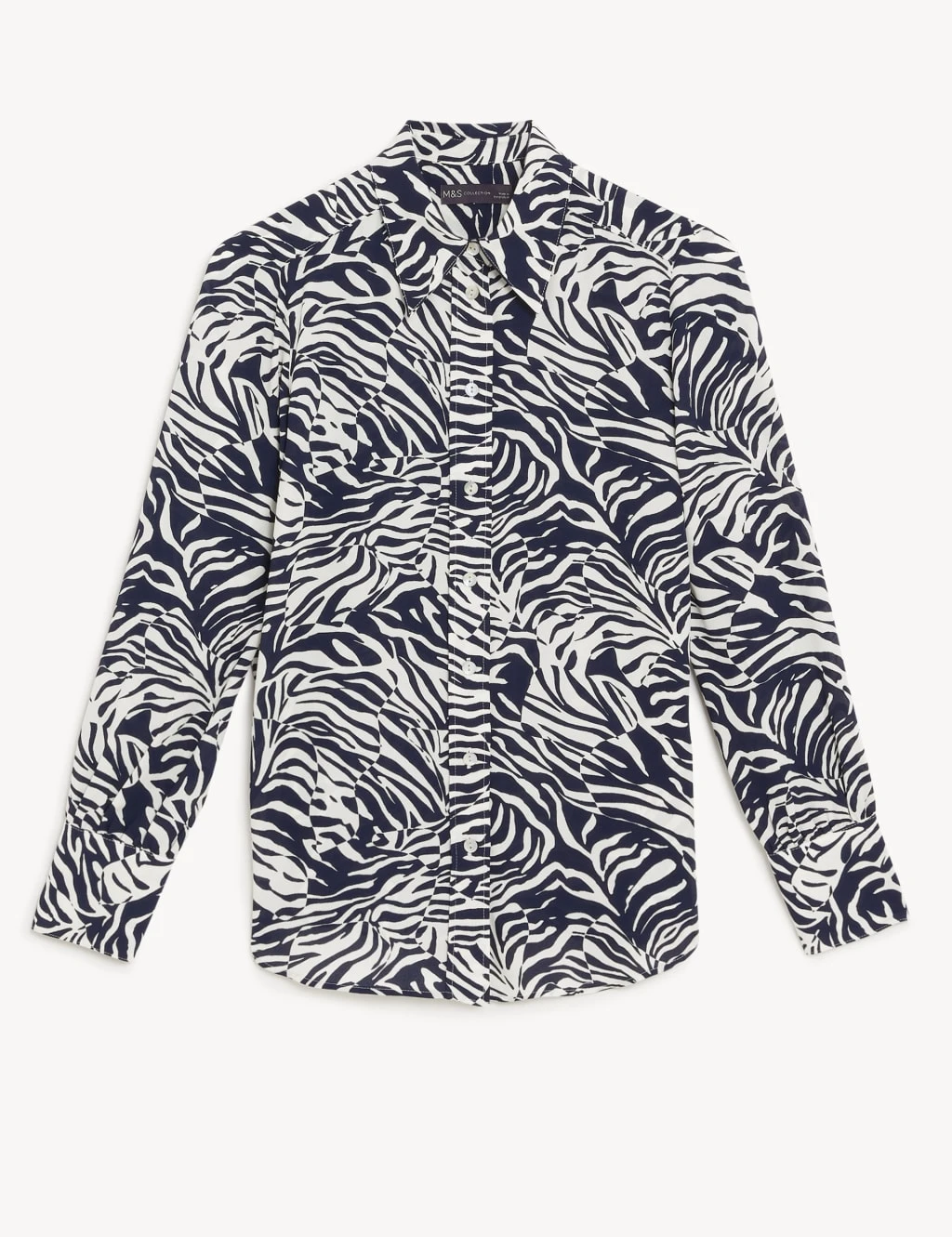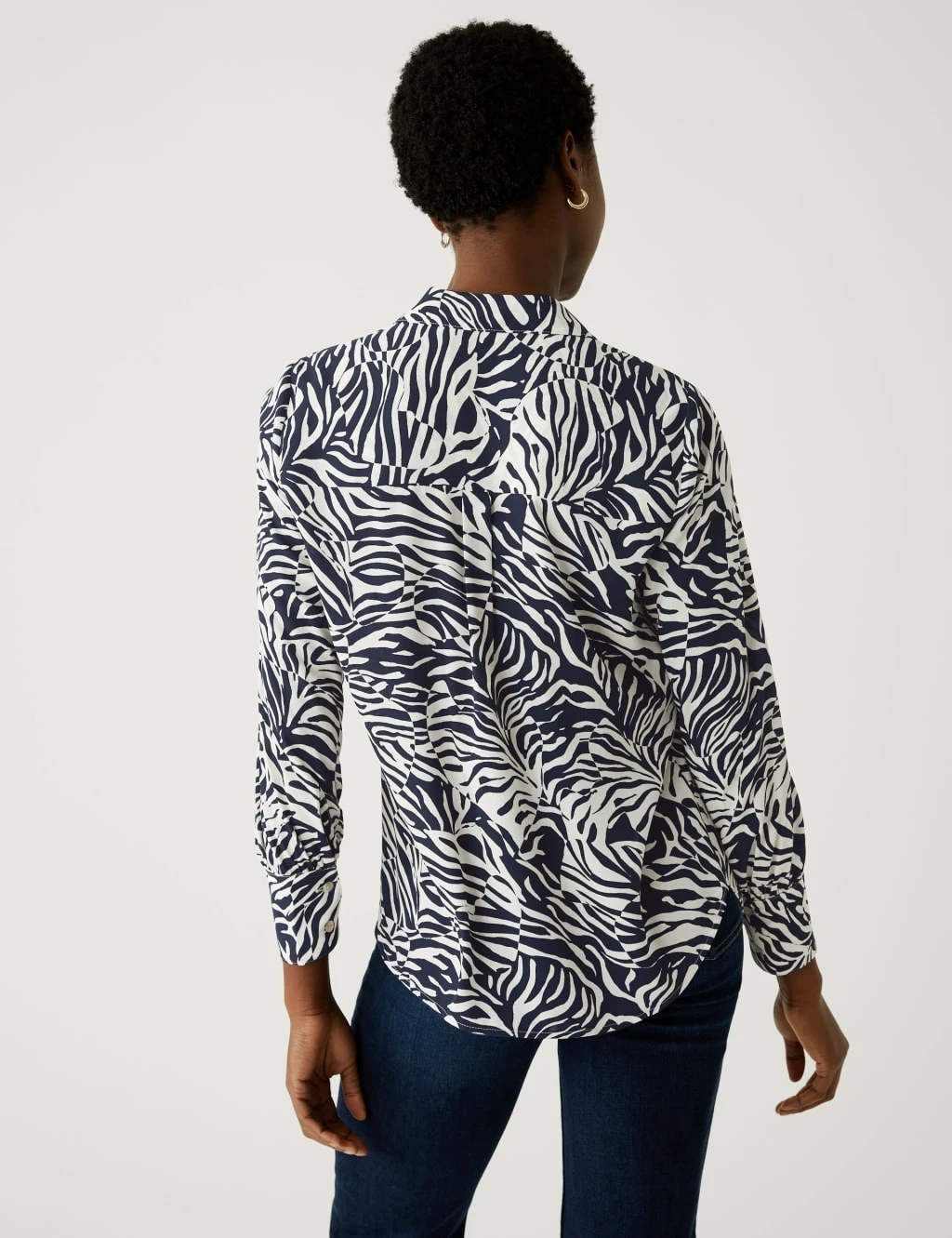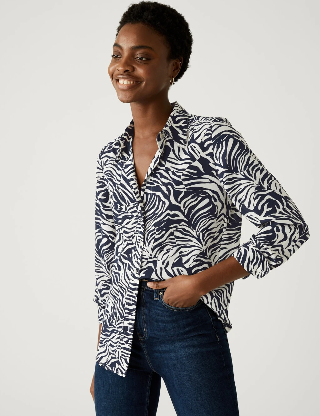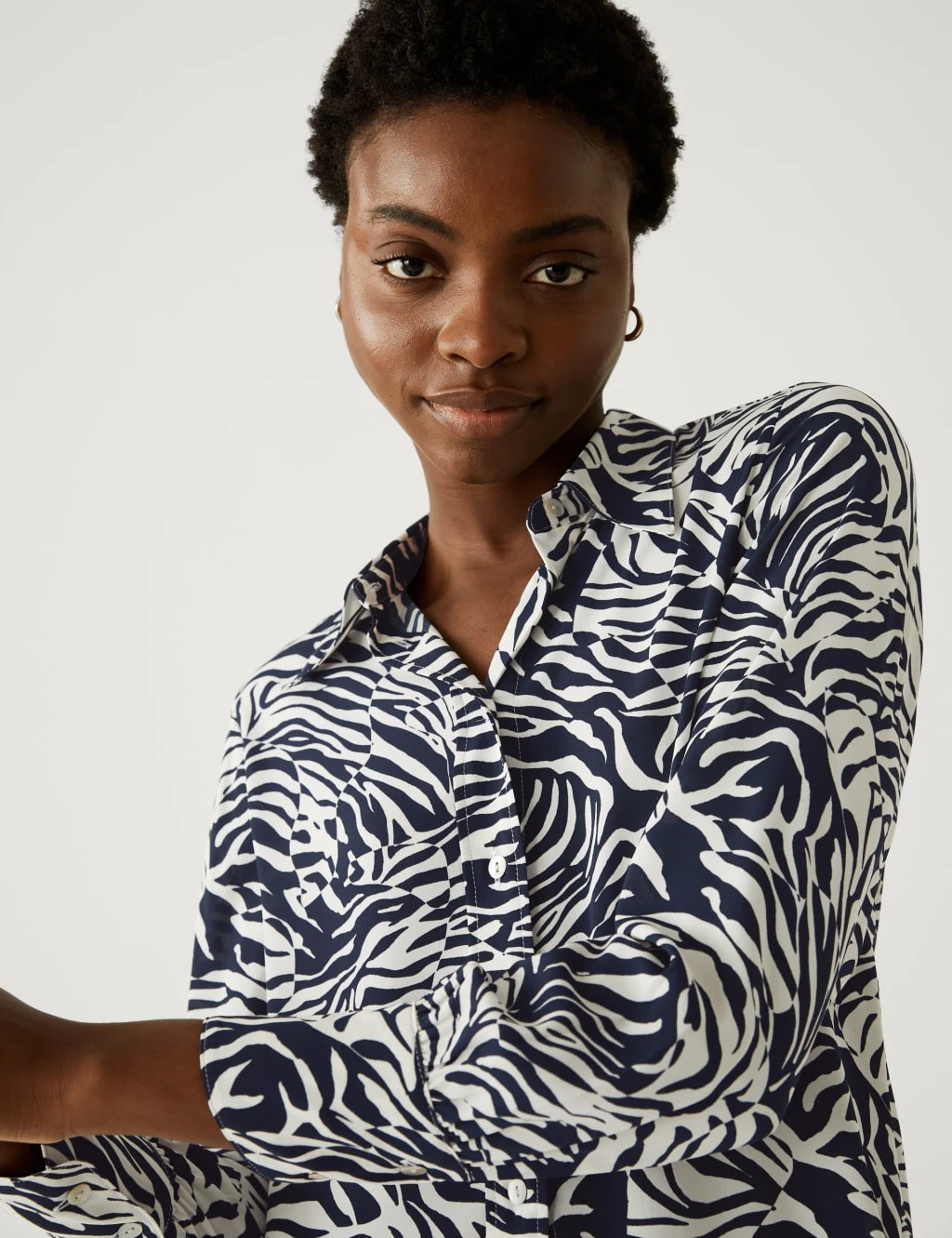 A striking print adds a playful pop to this smart shirt. It’s designed in a comfortable regular fit, with a pointed collar and long cuffed sleeves. A button-through front completes the neat look.