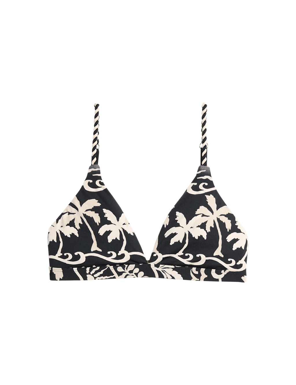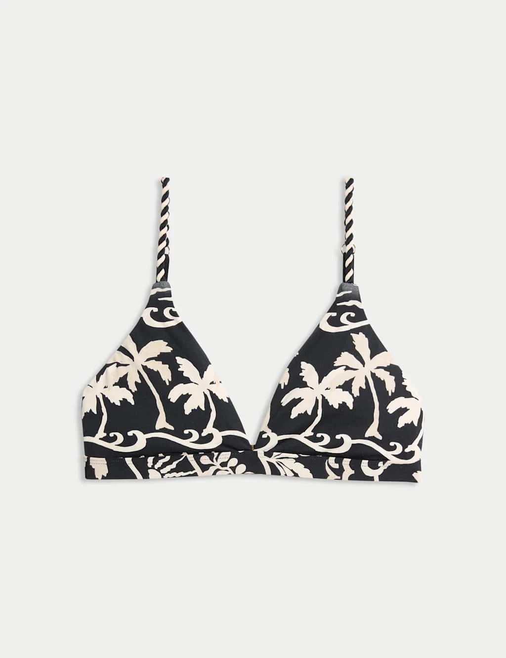 This printed bikini top brings a touch of glamour to your swimwear collection. It’s designed in a regular fit, with a flattering plunge neckline and adjustable straps. The padded cups are non-wired for gentle shaping and support. Sun Smart UPF50+ technology helps protect against UV rays, while our StayNew™ chlorine-resistant fabric keeps your bikini top looking newer for longer. M&S Collection: versatile styles in modern shapes with unique and playful details.