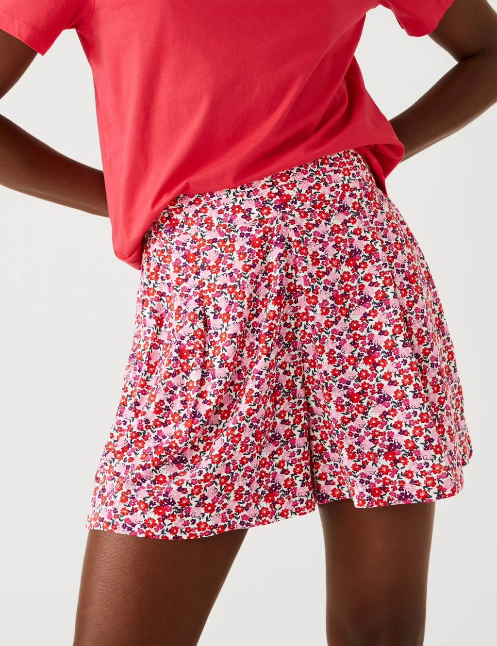 These printed shorts are perfect for holidays. Designed in a relaxed fit with two front pockets and a high elasticated waistband for casual comfort. The slightly tapered legs with pleat detailing create a flattering silhouette.