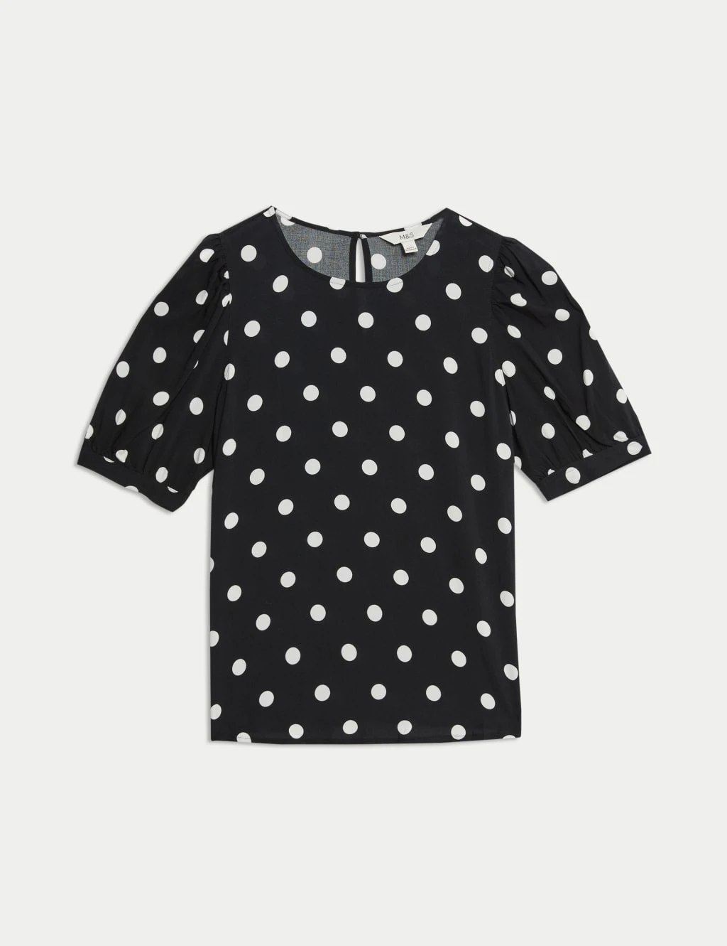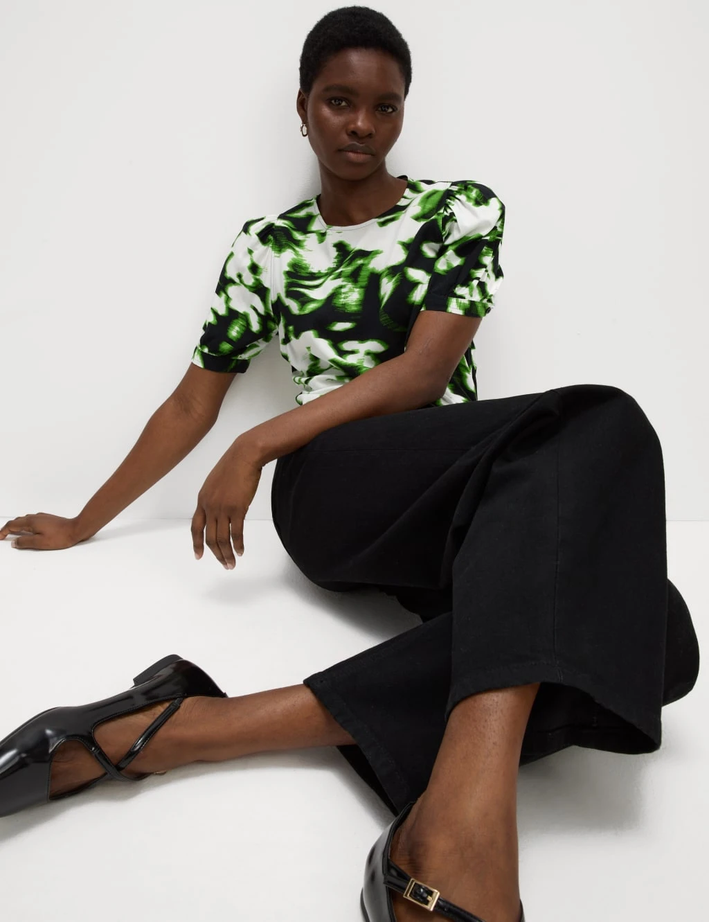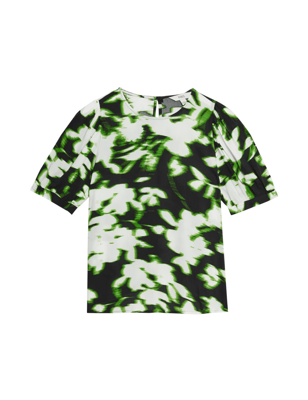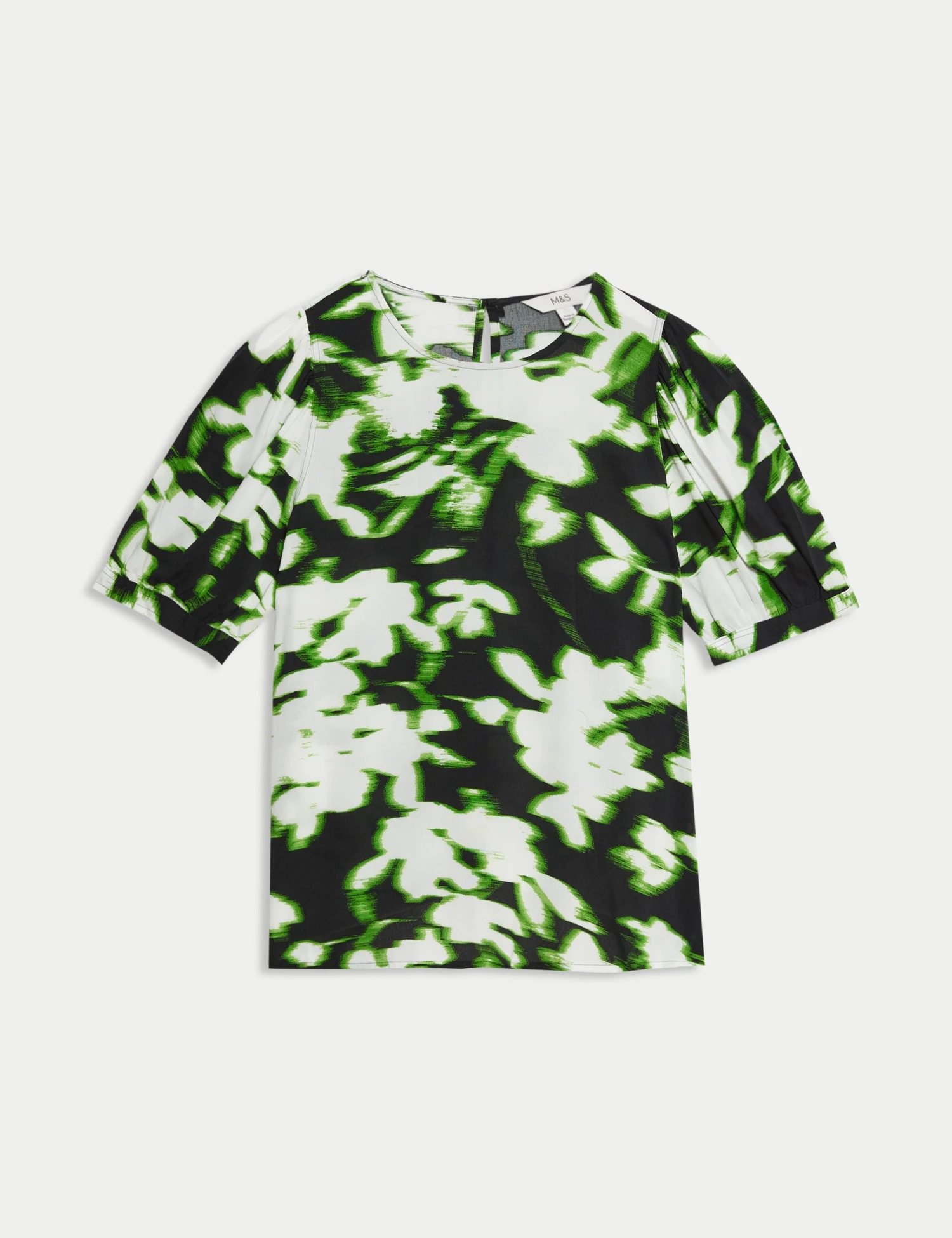This printed blouse is full of romantic detailing. It’s cut in an easy regular fit, with elasticated three-quarter-length puff sleeves. A button fastening at the back of the crew neck adds a neat touch. M&S Collection: easy-to-wear wardrobe staples that combine classic and contemporary styles.