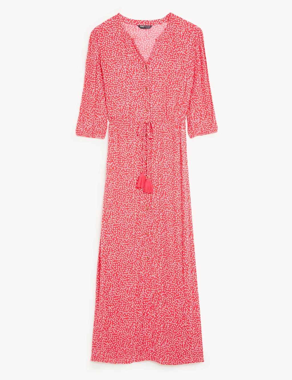 Add a pop of print to your holiday attire with this kaftan-style beach dress. It’s cut to an easy regular fit with a v-neckline and comes in a floaty maxi length. An adjustable drawstring waist accentuates your silhouette and is finished with tassels for a fun twist. Buttons all the way through offer versatile styling.