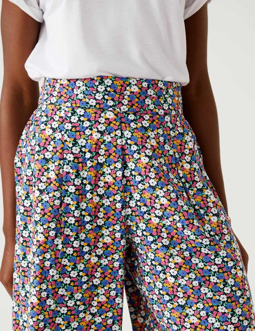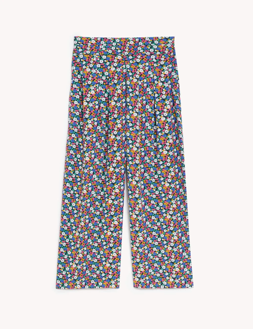 Add some eye-catching print to your holiday wardrobe with these breezy cropped trousers. They’re designed with a wide leg and a high elasticated waist that sits flat at the front for a neat look. Pleats add extra drape. Complete with handy pockets.