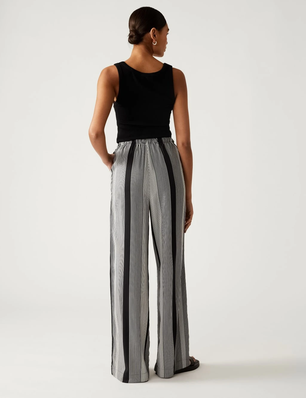 Add a bold pop to your outfit in these eye-catching printed trousers. They’re designed with stylish wide legs for a breezy feel. The high waistband is elasticated for comfort and features a drawstring for easy adjustment. A pair of practical front pockets allow you to carry essentials with you.