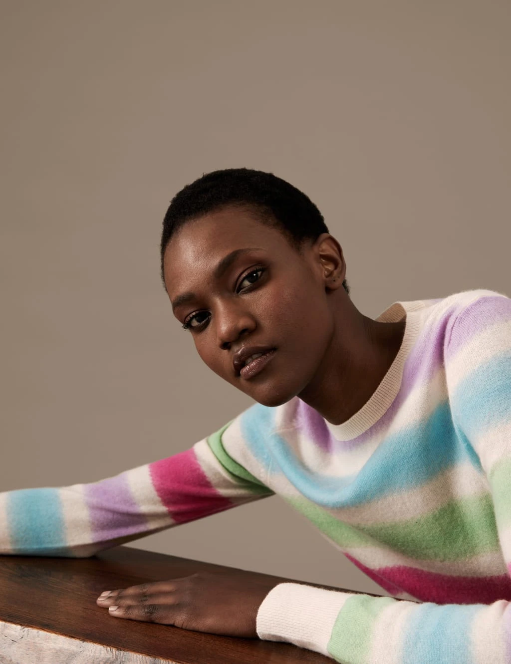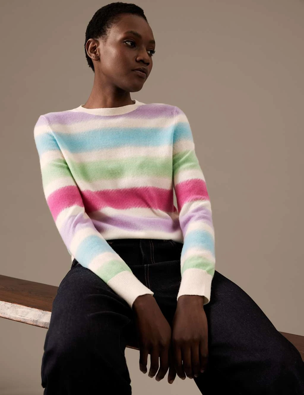 Pull on this pure cashmere jumper for soft-as-clouds comfort and cosy warmth. It’s made in a comfy regular fit, with an easy crew neckline. Ombré stripes provide a delicate rainbow of colours, while ribbed trims at the cuffs and waistband complete the look.