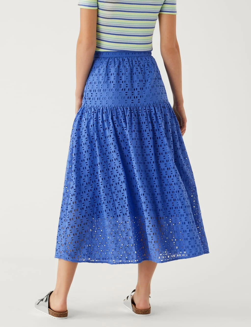 Pretty broderie brings a feminine feel to this pure cotton skirt. Cut in an easy regular fit, the midaxi-length design fastens with a zip. It’s lined for all-day comfort and modesty.