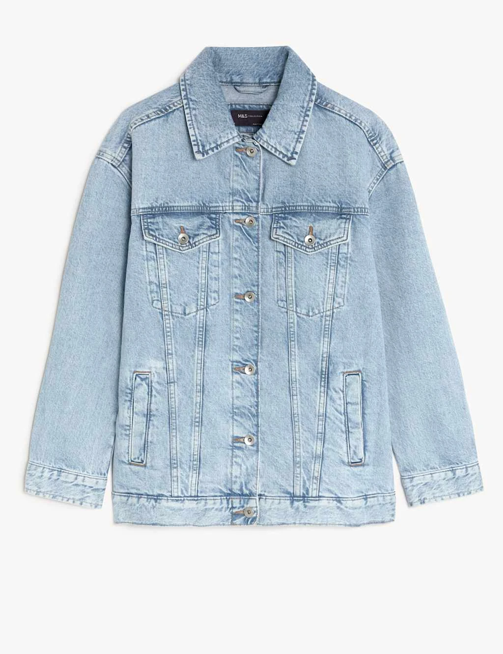 This classic denim jacket is made from soft pure cotton. It’s cut to a comfortable relaxed fit for a laid-back look. Traditional touches include metallic buttons, a collar and feature stitching. Four pockets provide an additional authentic detail: two flap pockets at the chest and two further at the sides.