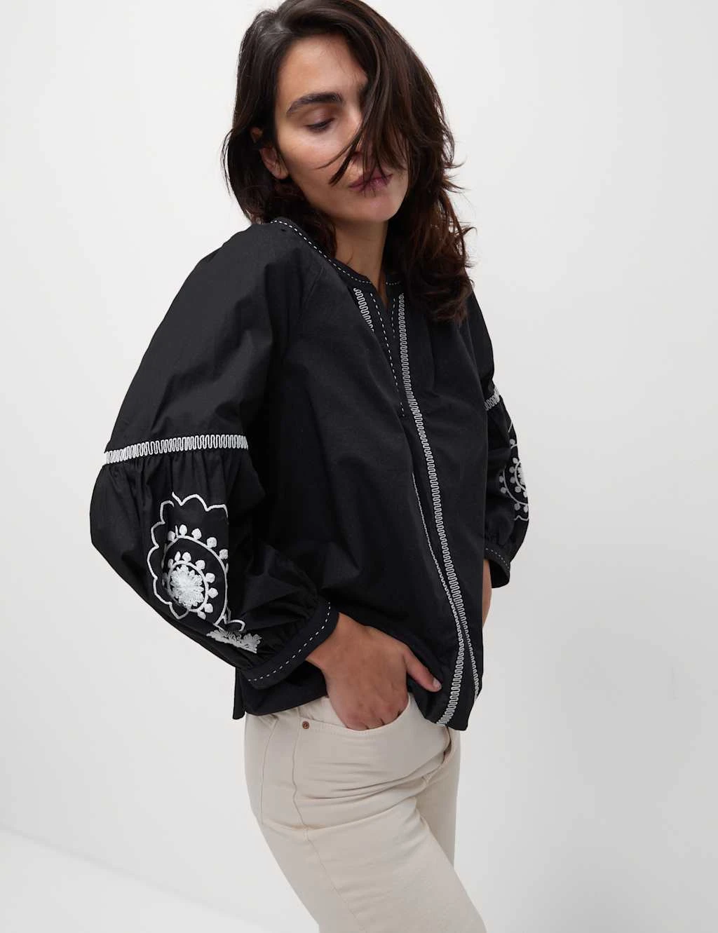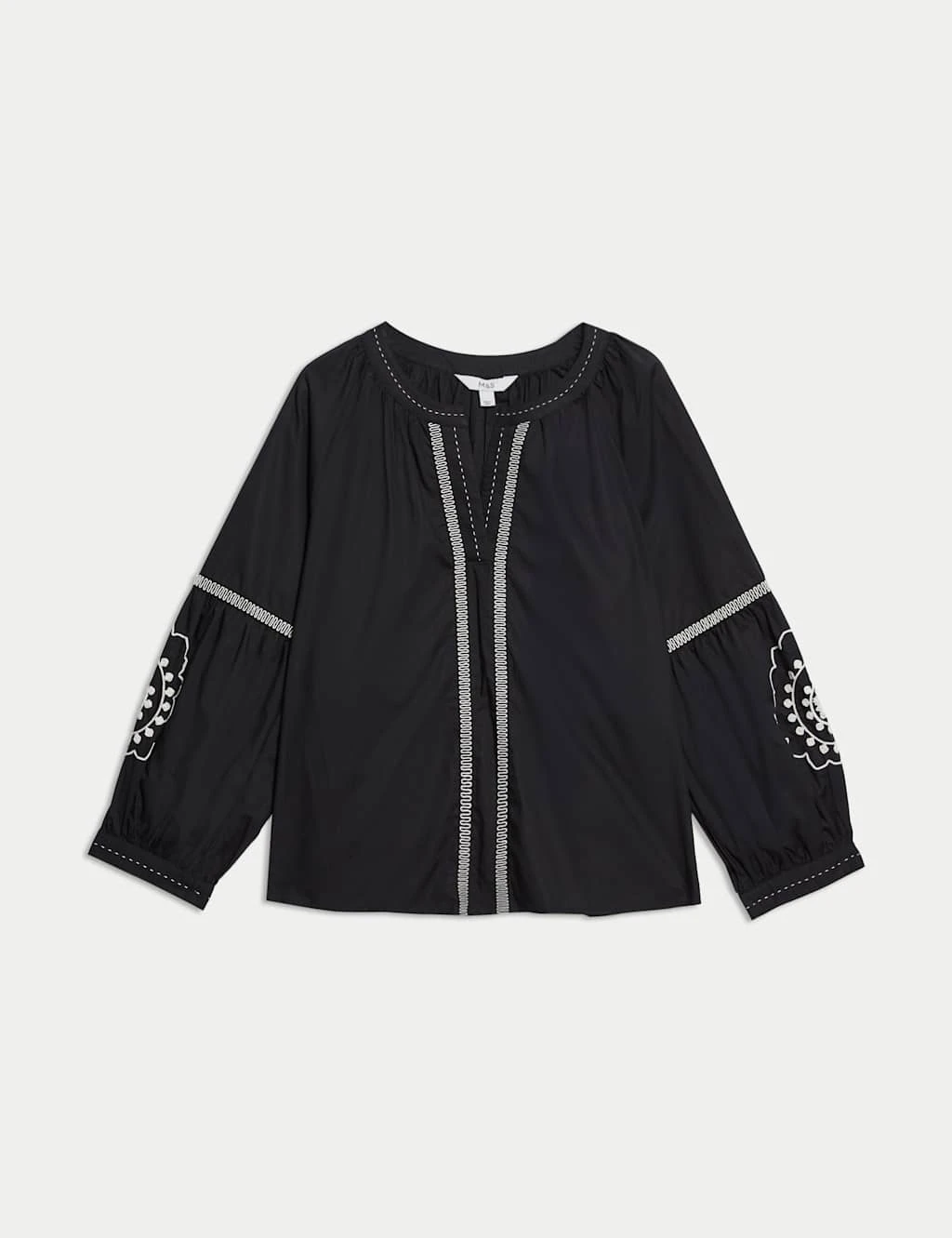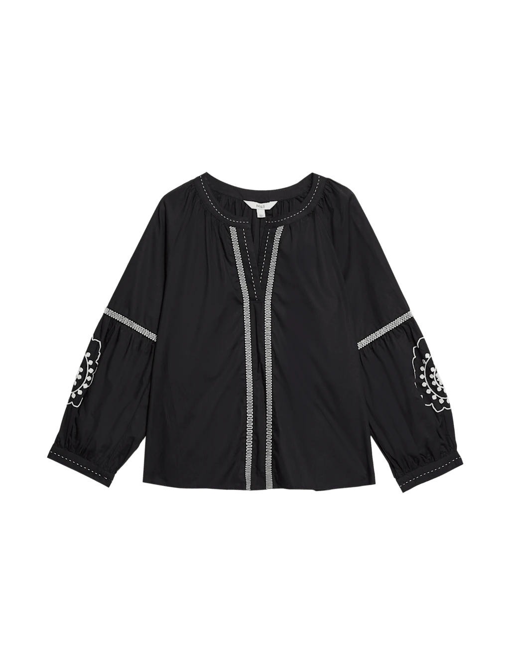 Embrace a boho-inspired look with this pure cotton blouse. Regular fit, with a flattering v-neckline. The 3/4 length sleeves and centre front are decorated with intricate embroidery. M&S Collection: easy-to-wear wardrobe staples that combine classic and contemporary styles.