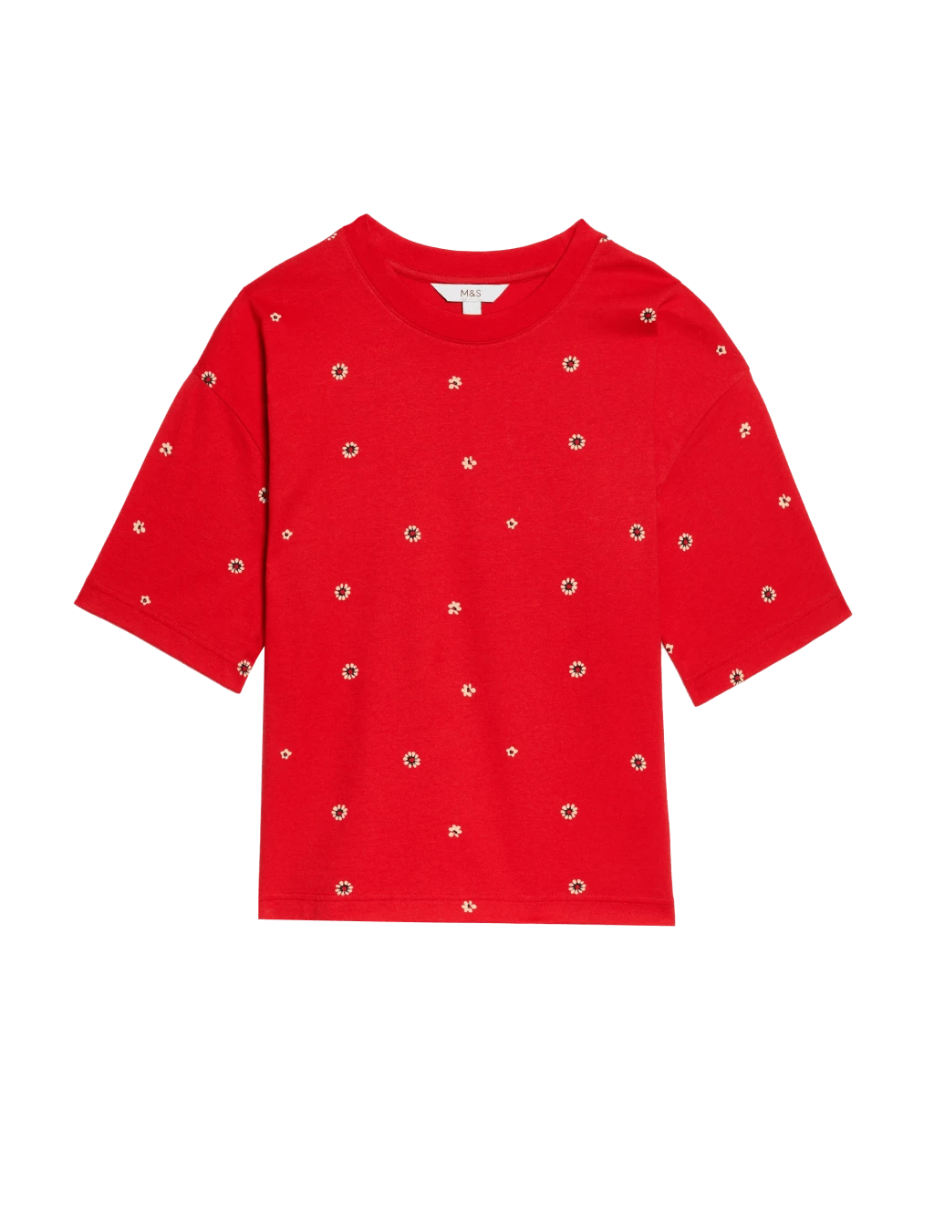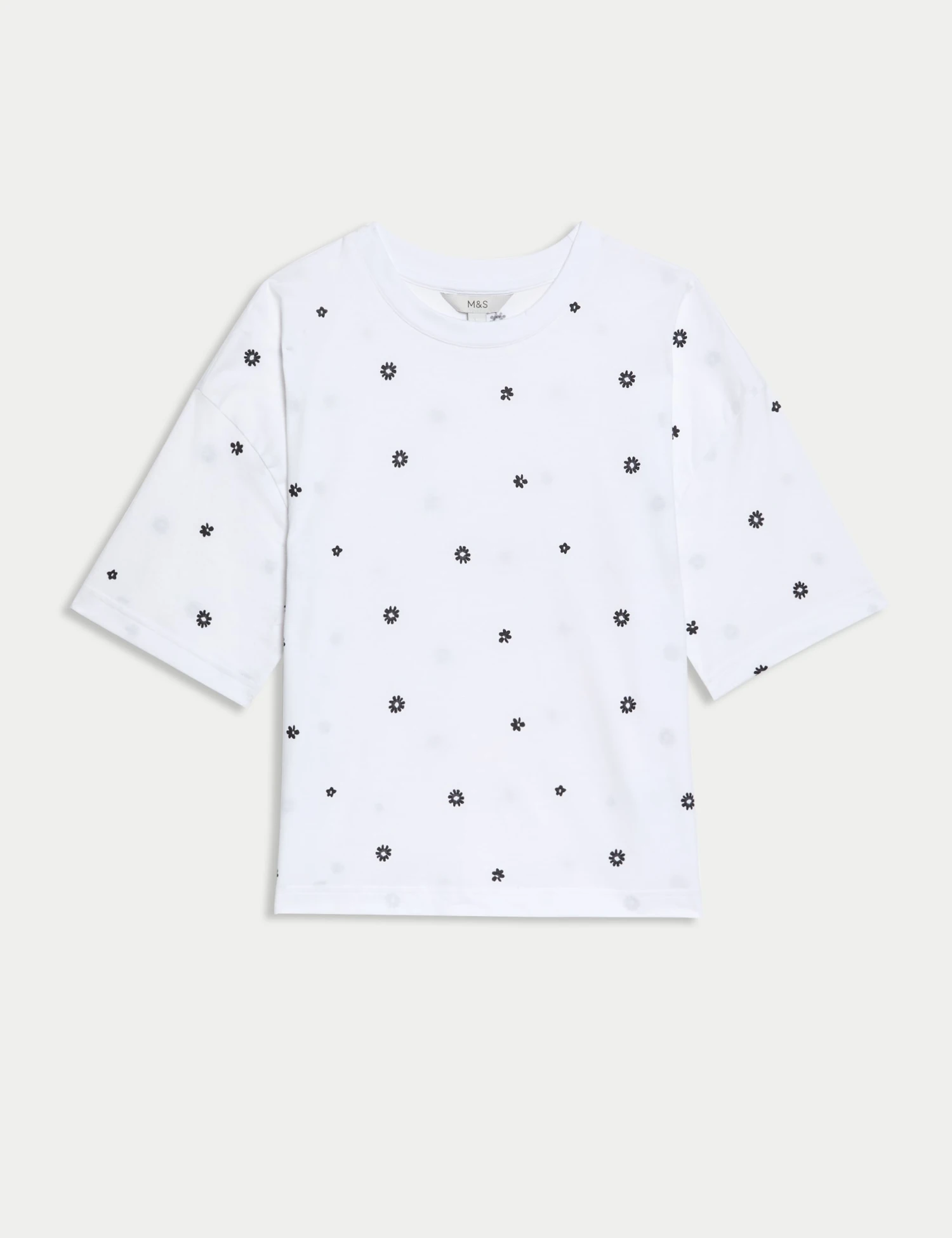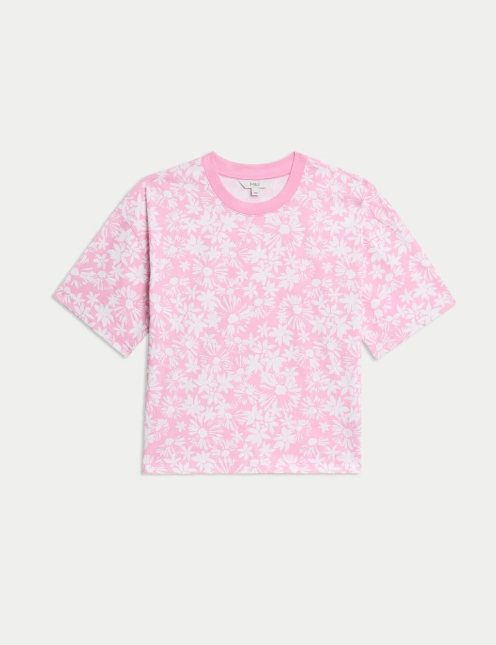 A floral print adds a playful touch to this pure cotton t-shirt. It’s designed in a comfy relaxed fit, with a boxy shape and dropped shoulders for a laid-back look. The piece is complete with short sleeves and a neat crew neckline. M&S Collection: easy-to-wear wardrobe staples that combine classic and contemporary styles.