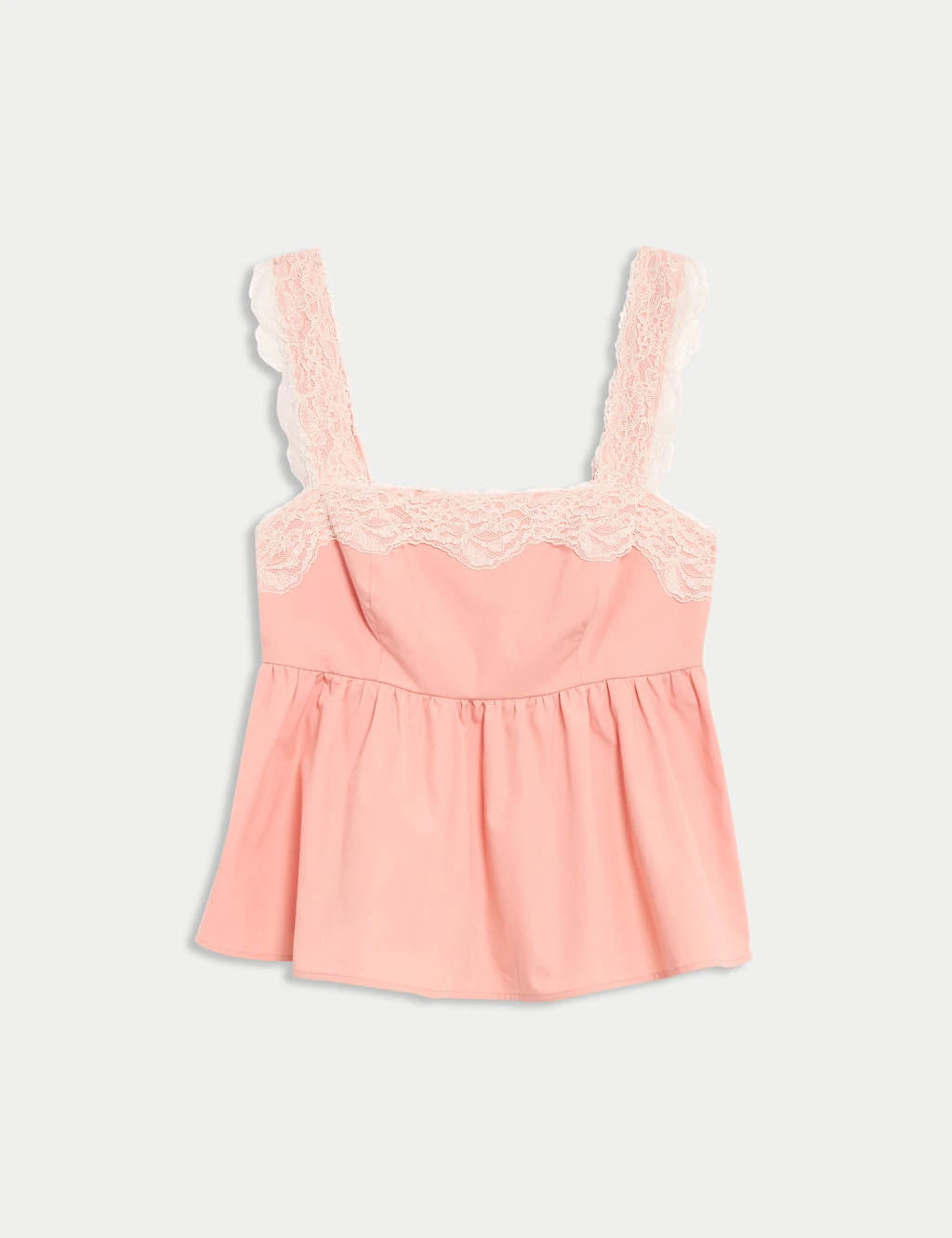 This smooth pure cotton cami top is a pretty choice for warmer days. It’s cut to a regular fit. Lined for comfort. Flattering square neckline and broad straps. The lace detail adds a touch of extra charm. M&S Collection: easy-to-wear wardrobe staples that combine classic and contemporary styles.