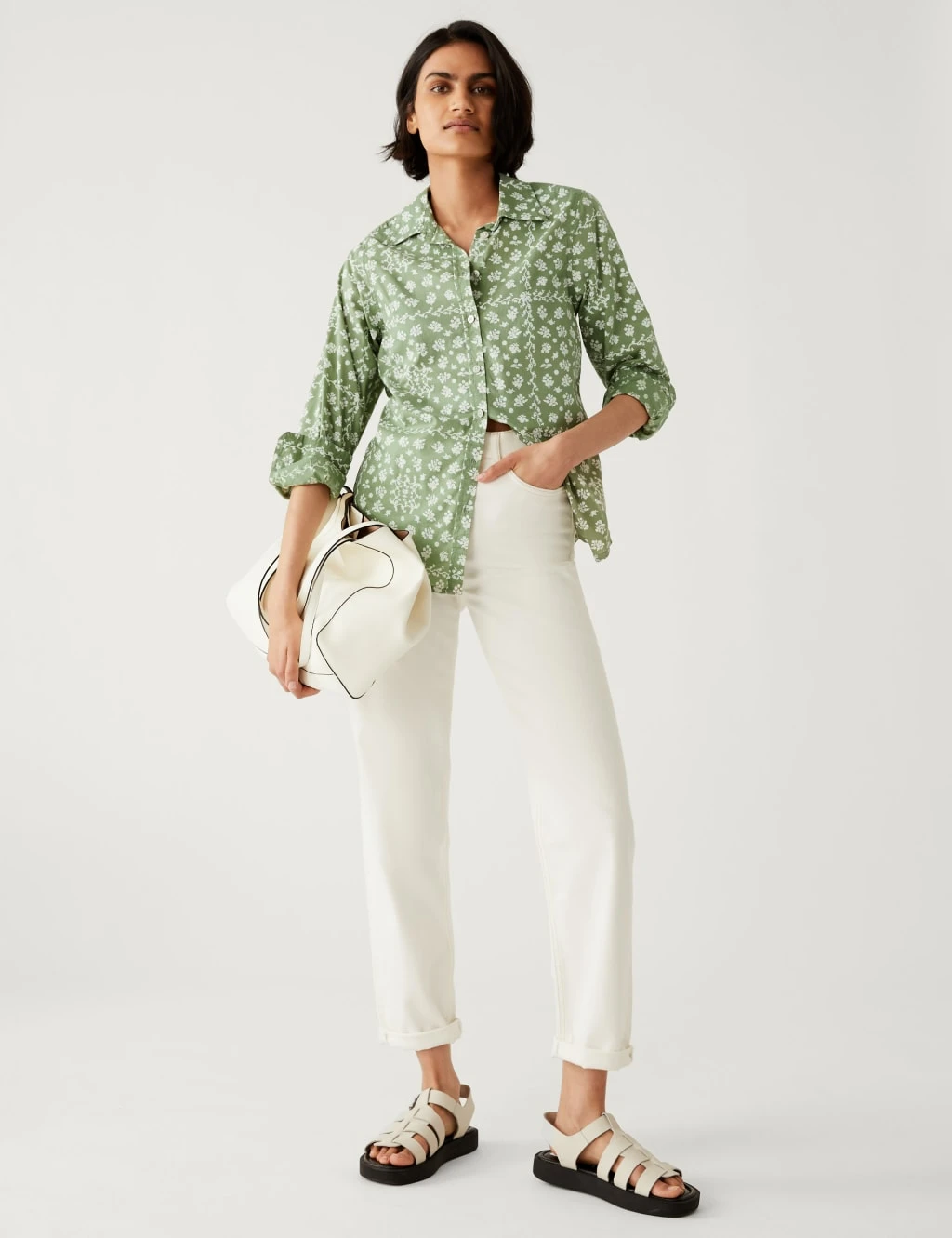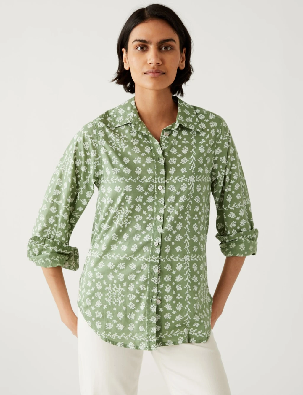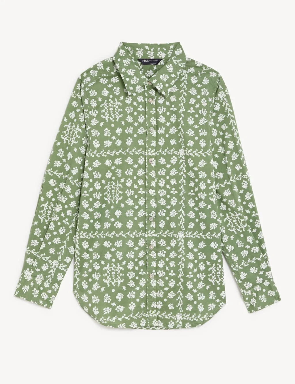 Create a fresh and distinctive look with this printed pure cotton shirt. Cut to a regular fit with long sleeves and a smart collared neck. Pretty buttons feature on the front fastening and rounded cuffs. We only ever use responsibly sourced cotton for our clothes.