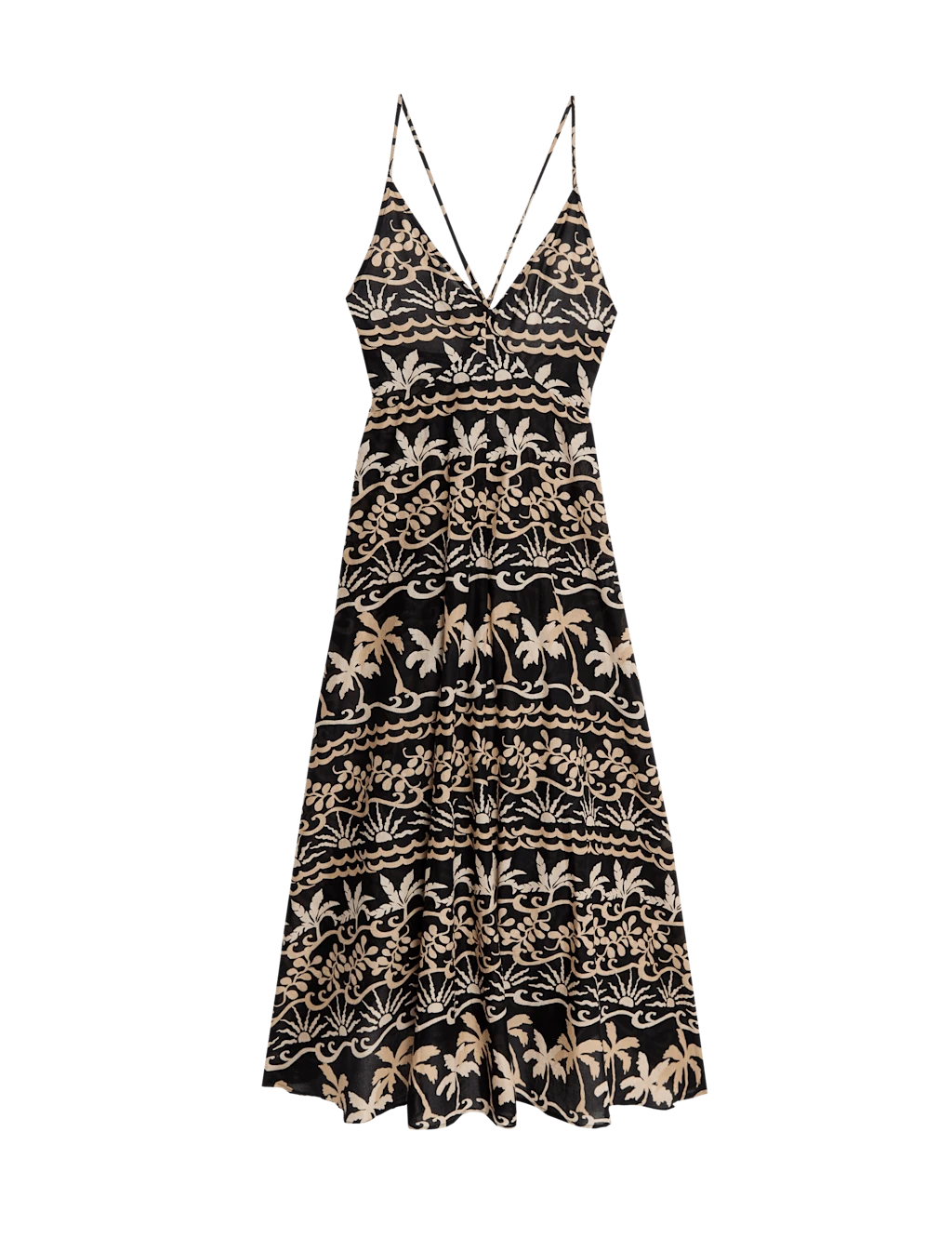 Create a statement look on sunny days with this printed, pure cotton beach dress. The strappy piece is cut in a regular fit, with a deep v-neckline and a full skirt that falls in swishy folds to a midaxi length. M&S Collection: easy-to-wear wardrobe staples that combine classic and contemporary styles.