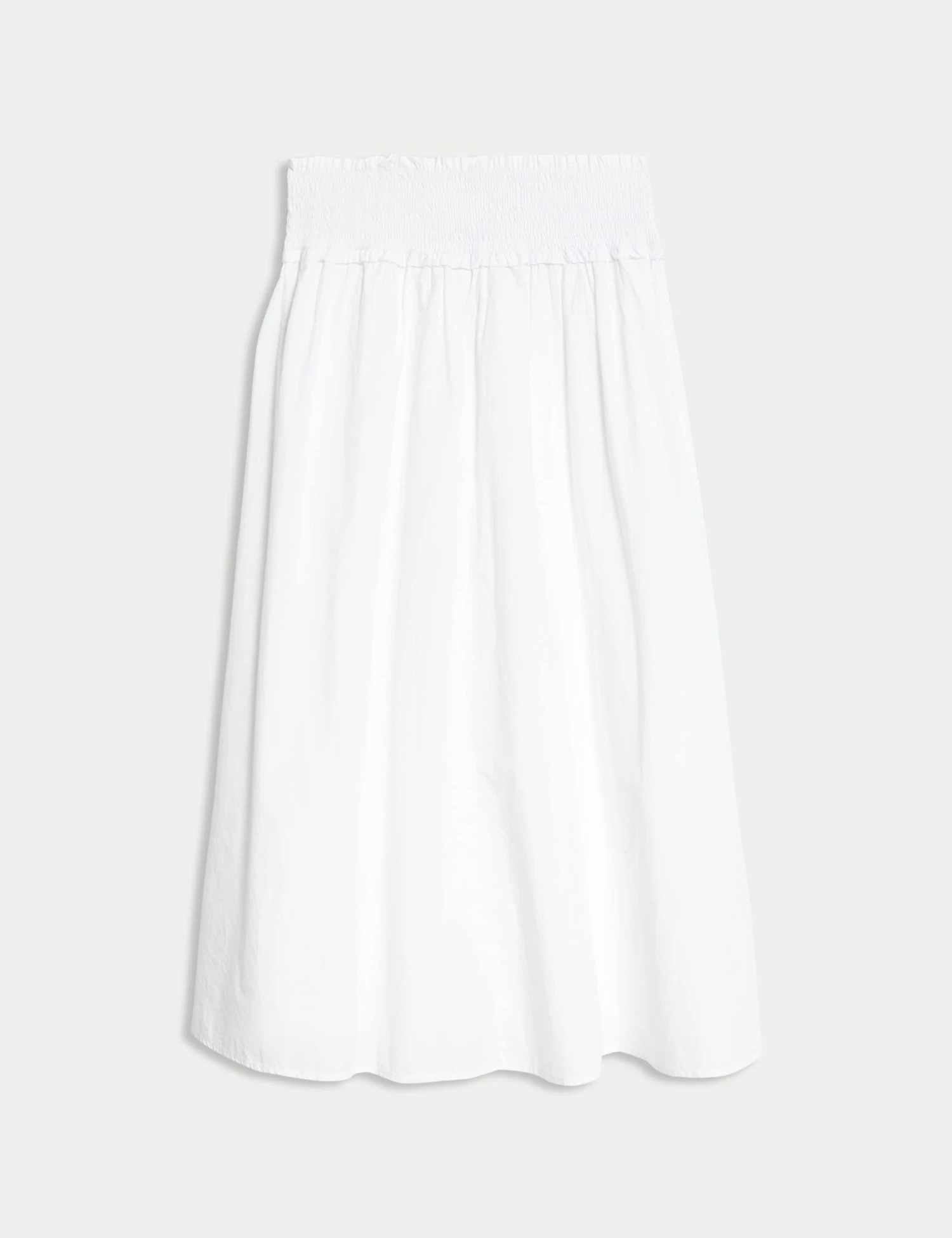Get ready for summer days with this floaty midi skirt. It’s made to a regular fit from pure cotton for a breezy feel. The shirred elasticated waist enhances the skirt’s flattering A-line shape, and makes it extra comfy to wear. M&S Collection: easy-to-wear wardrobe staples that combine classic and contemporary styles.