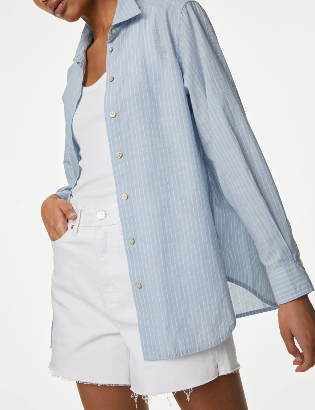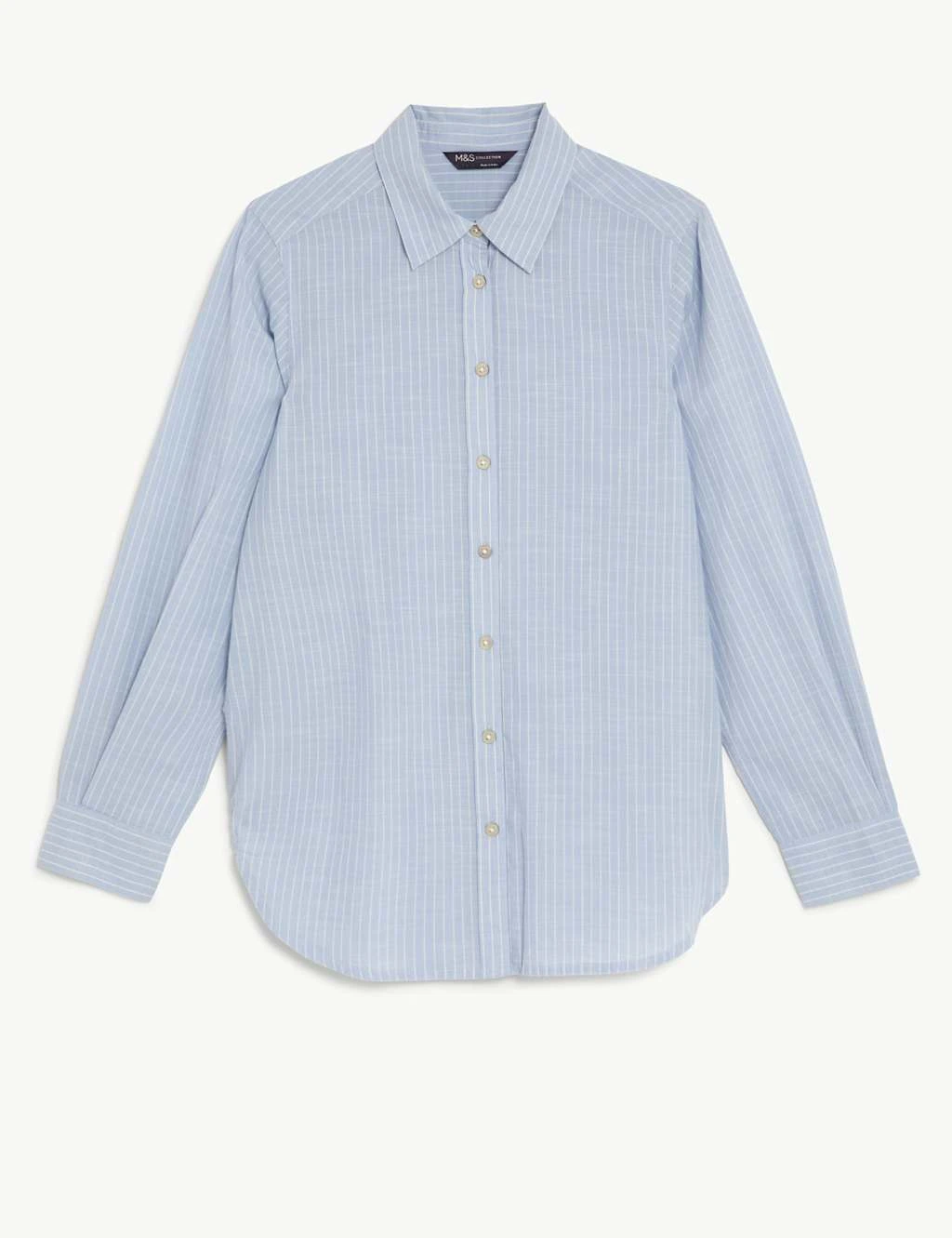 Update your smart-casual collection with this essential striped shirt. Cut to a regular fit with a crisp collared neckline and button-through front. The long-sleeved piece is crafted from pure cotton for a breathable feel.