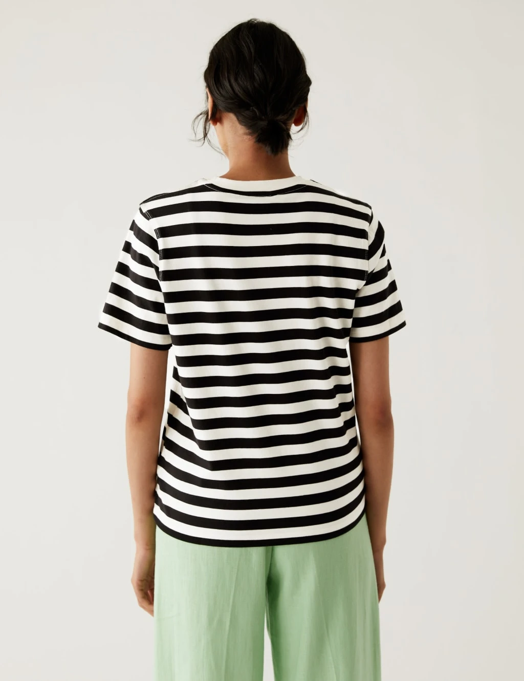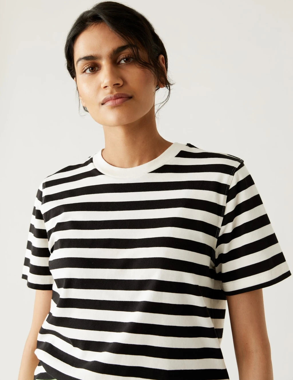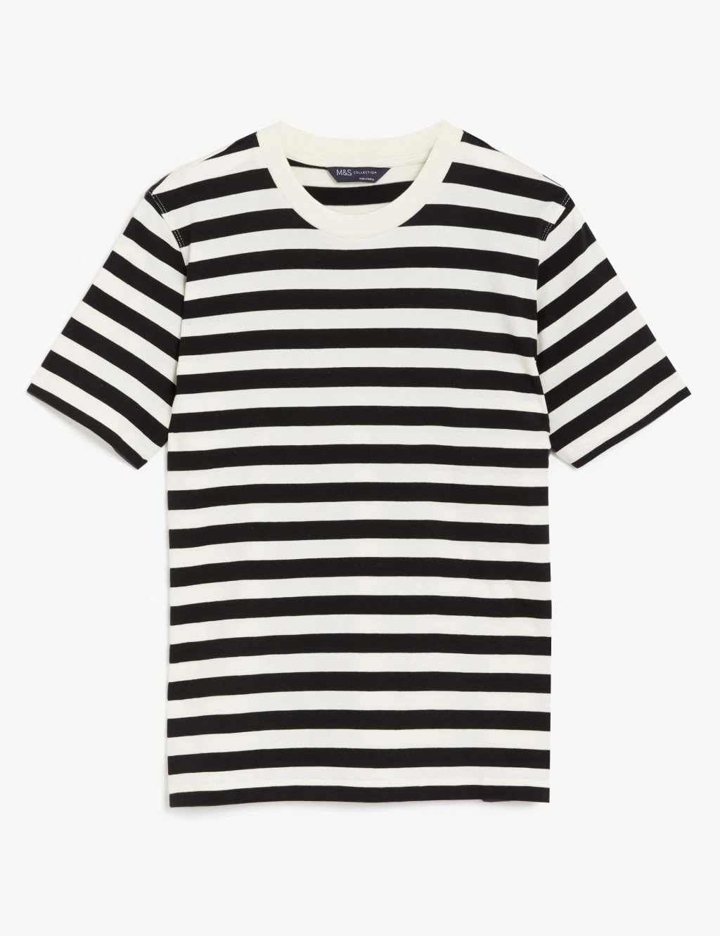 Refresh your wardrobe essentials with this pure cotton modern tee. Cut in a modern regular fit with a crew neckline. A timeless striped pattern completes the versatile look.