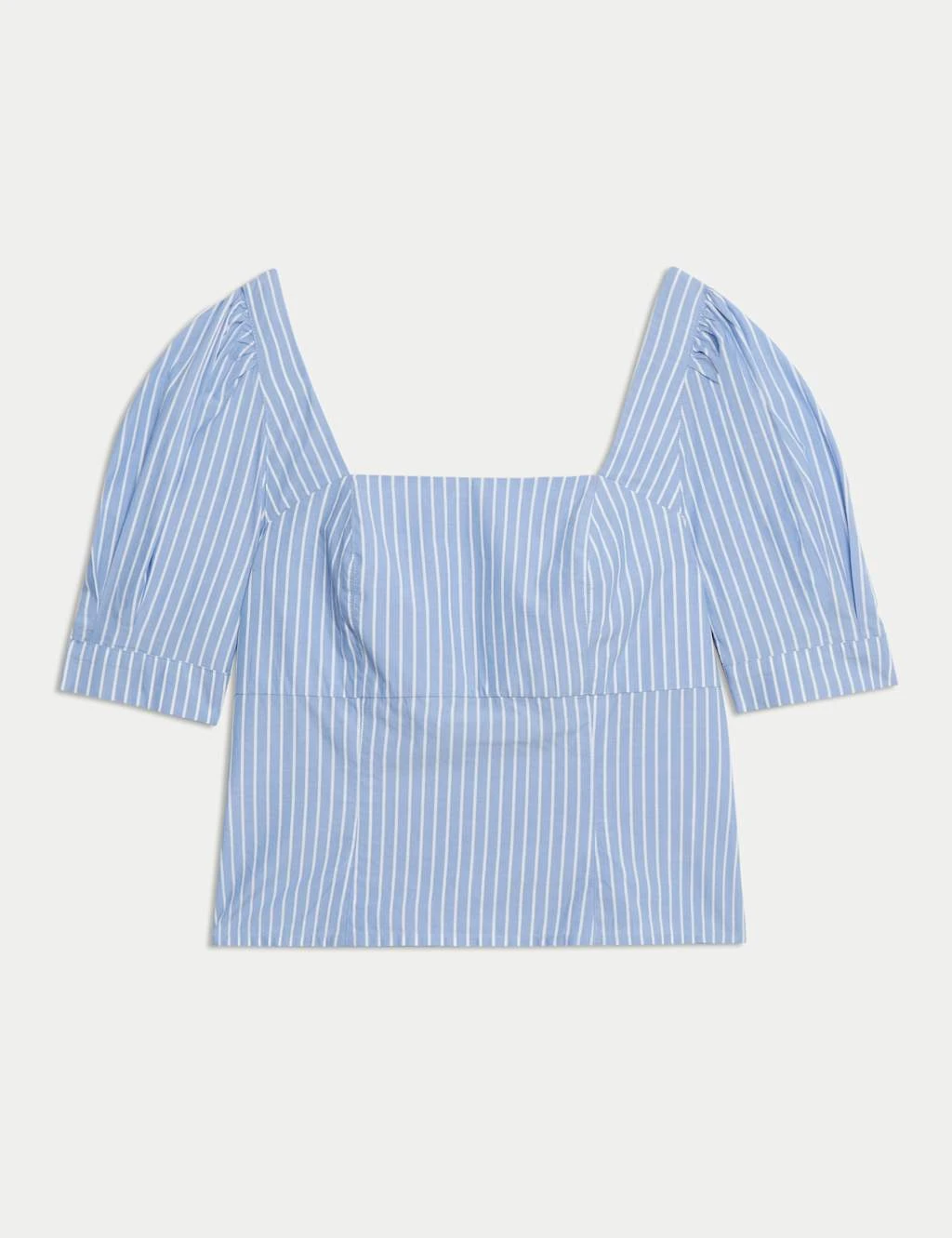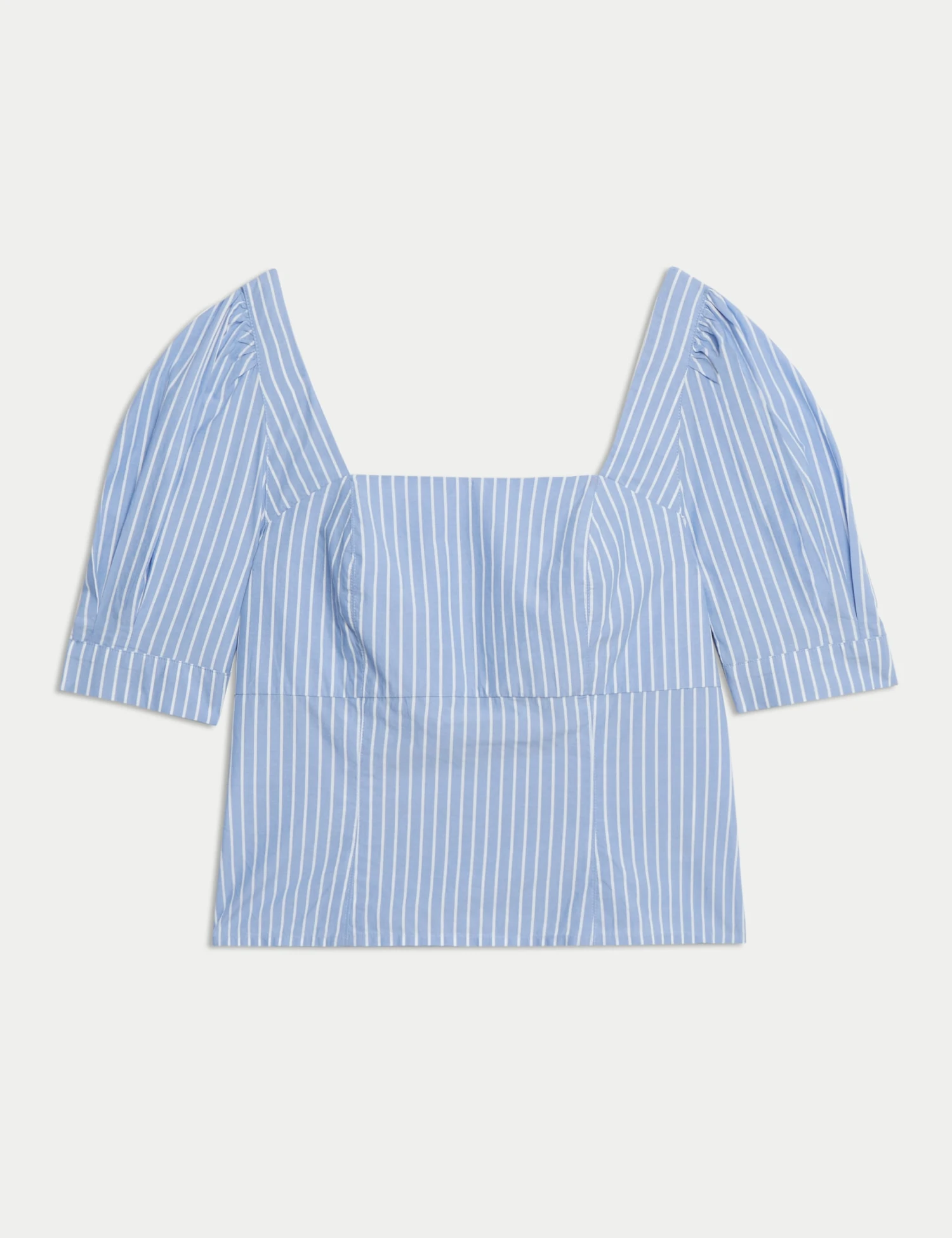 Refresh your look with this pure cotton top, perfect for versatile styling. The regular fit features a slim fit style body and a flattering square neckline for an effortlessly chic look. Short puff sleeves add soft volume, while the tie fastening at the back lends a charming finishing touch. M&S Collection: easy-to-wear wardrobe staples that combine classic and contemporary styles.