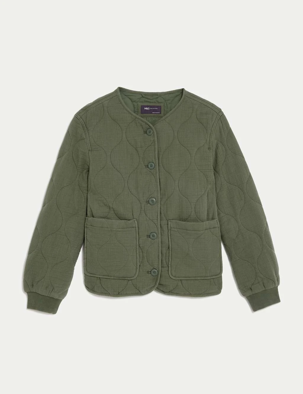 Crafted from pure cotton with an authentic wash and texture, this jar-quilted lightweight jacket offers a soft and cosy feel. It’s cut in a regular fit and is fully lined for comfort. The collarless design brings simplicity, while ribbed cuffs add snug detail. This piece is complete with two external patch pockets to keep your small essentials close.