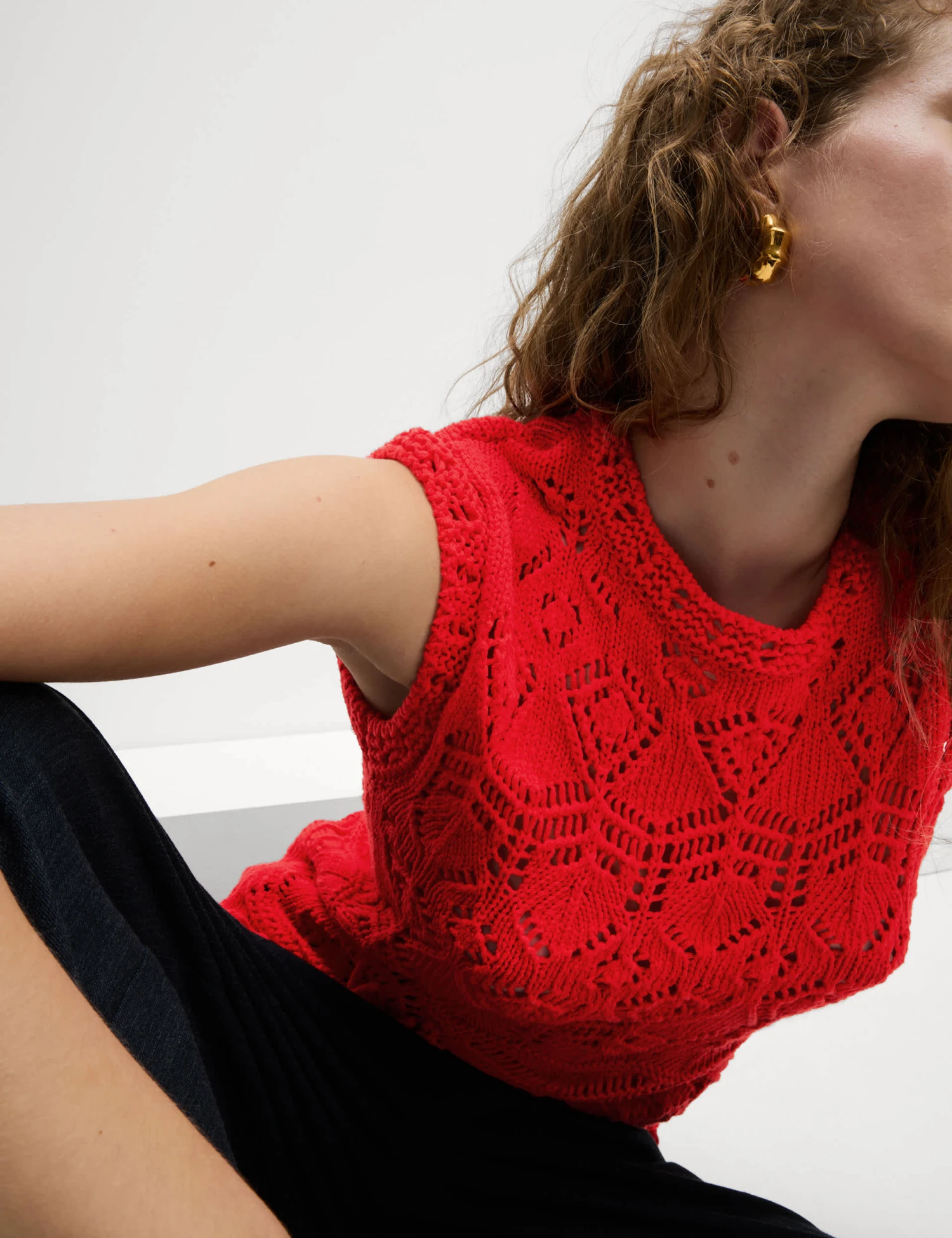 Add a stylish layer to your wardrobe with this pure cotton knitted top. The slim fit and classic crew neckline create a sleek, flattering silhouette. An open-stitch texture brings subtle detail, while the fringed hem adds a playful finishing touch. M&S Collection: easy-to-wear wardrobe staples that combine classic and contemporary styles.