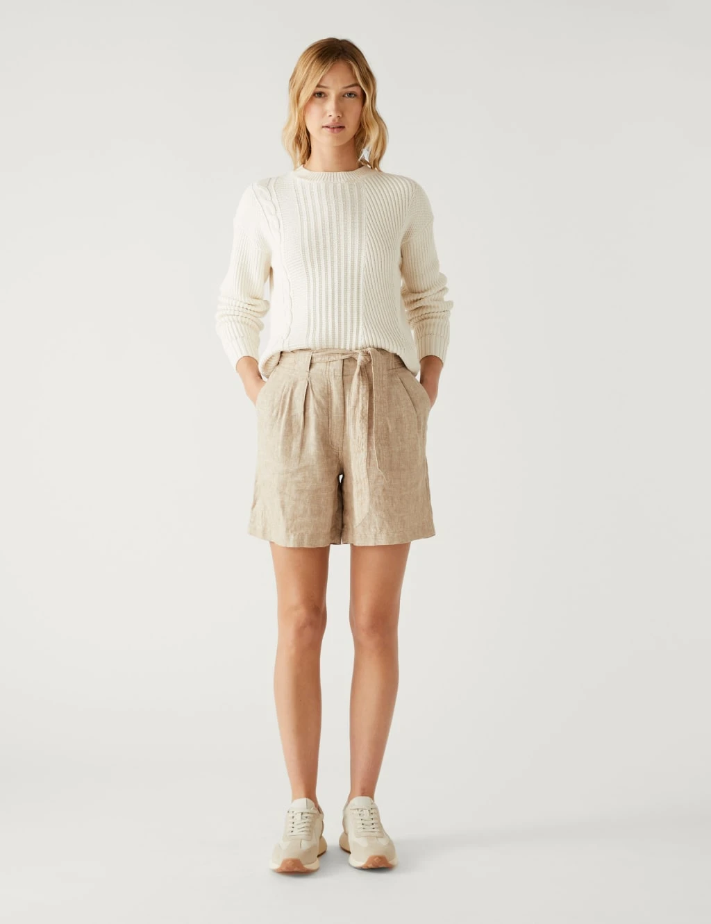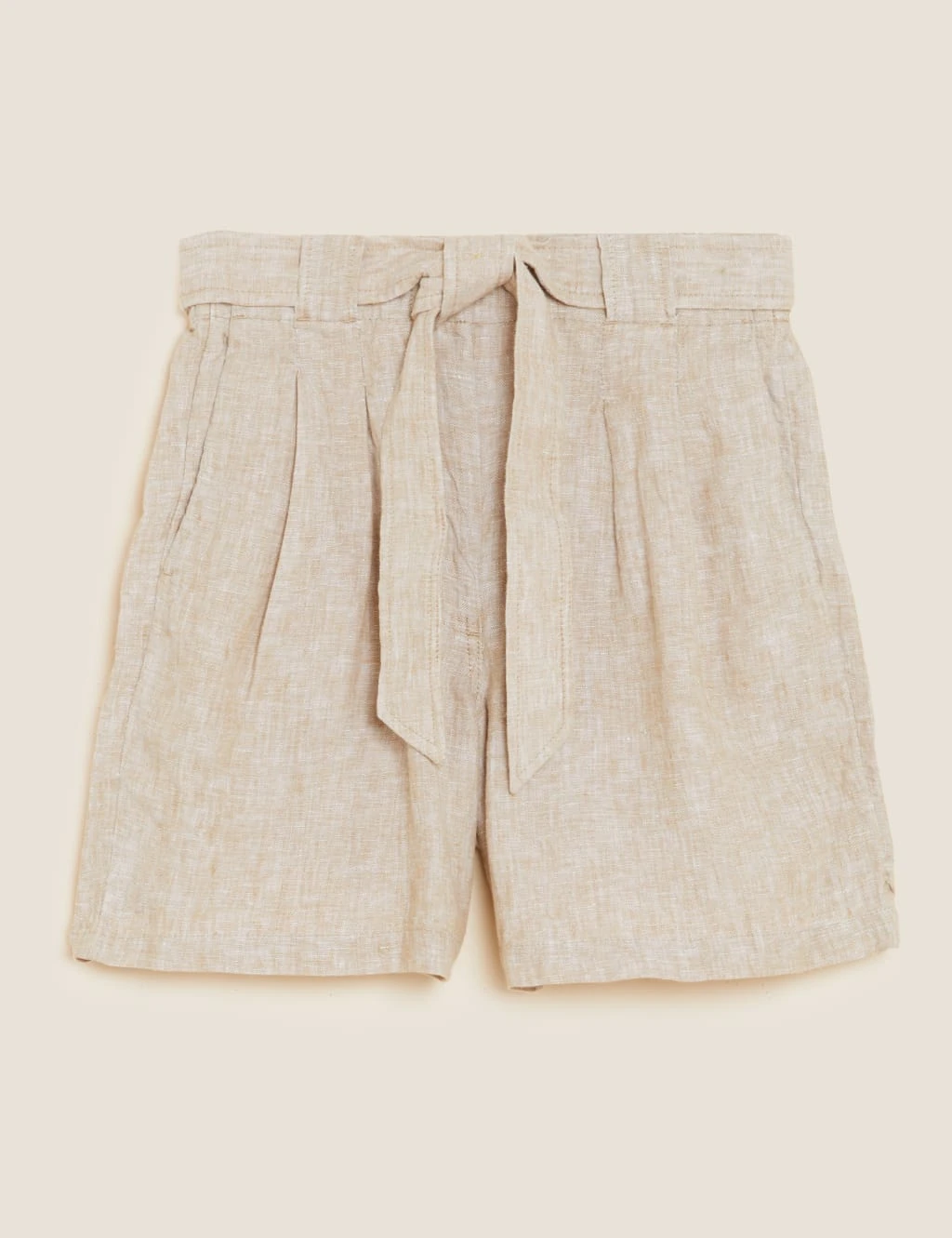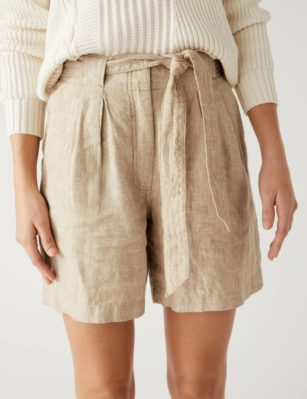 We’ve crafted these shorts from pure linen for exceptional breathability. The high-rise waist is secured with a hook bar and zip fastening and a self-tie belt for extra detail. Pintuck stitching and straight hems complete the neat finish.