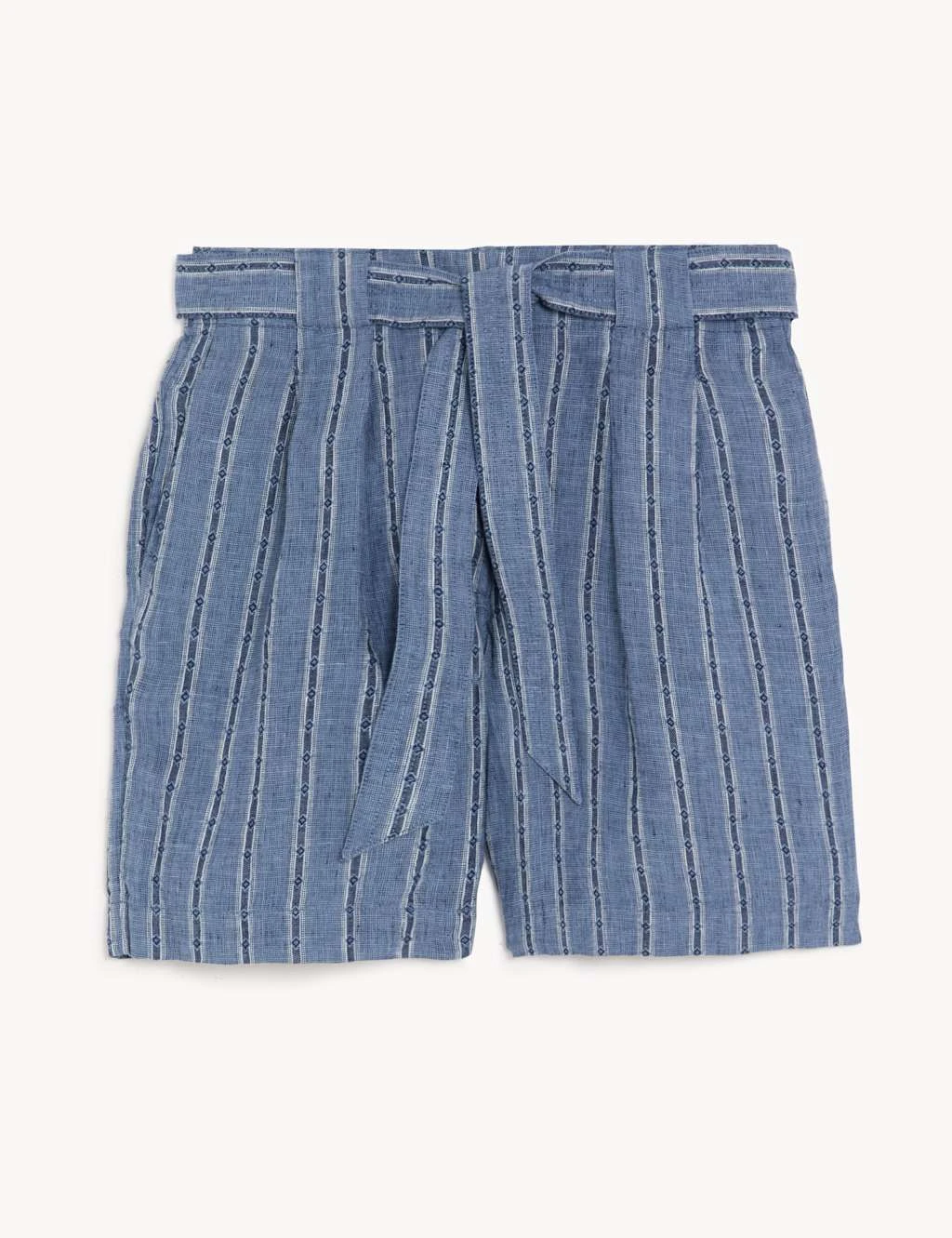 These pure linen striped shorts are an eye-catching summery option. The comfortable high-waisted design has a concealed hook and bar fastening, with a detachable belt for a smart look. Handy pockets at the sides and back add a practical finishing touch.