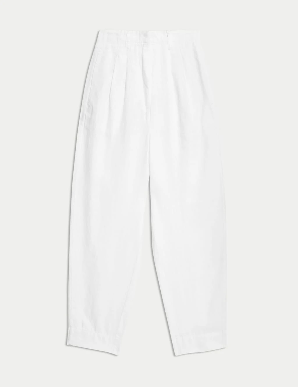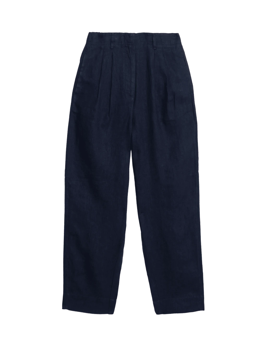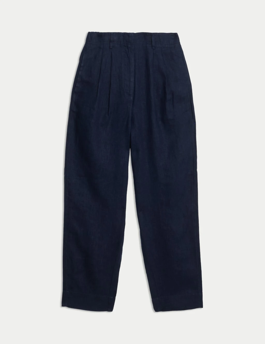 These pure linen trousers make a sophisticated addition to your warm weather wardrobe. They have a contemporary tapered fit, with a flattering high waist that’s elasticated at the back for comfort. The design features two front pockets and two back pockets, plus a neat hook bar and zip fastening. M&S Collection: easy-to-wear wardrobe staples that combine classic and contemporary styles.