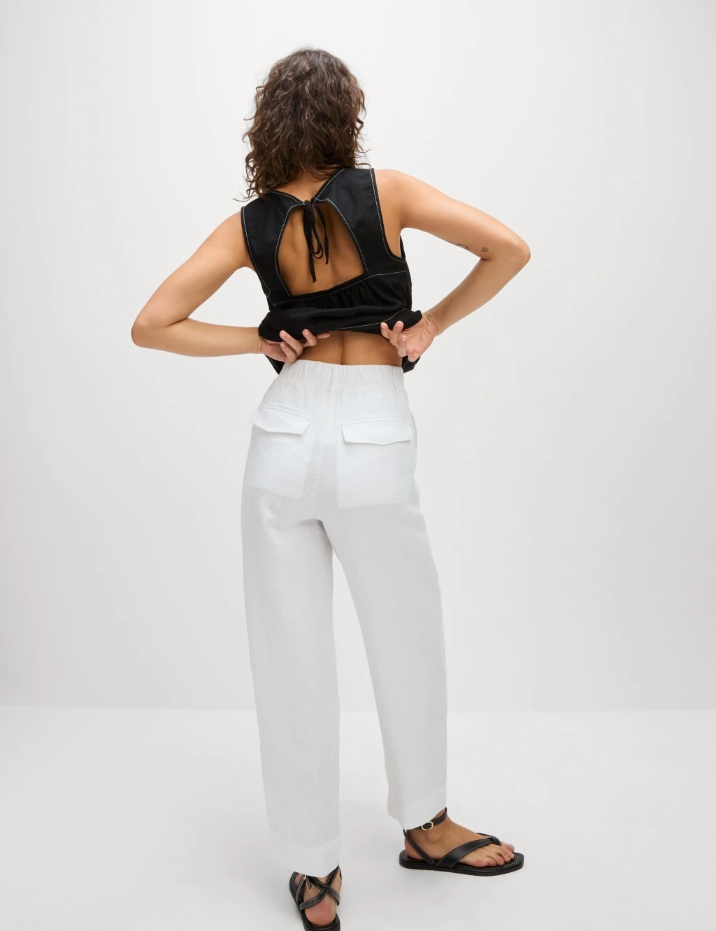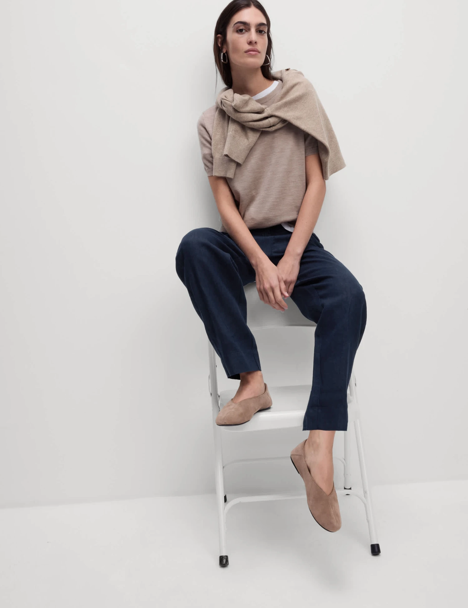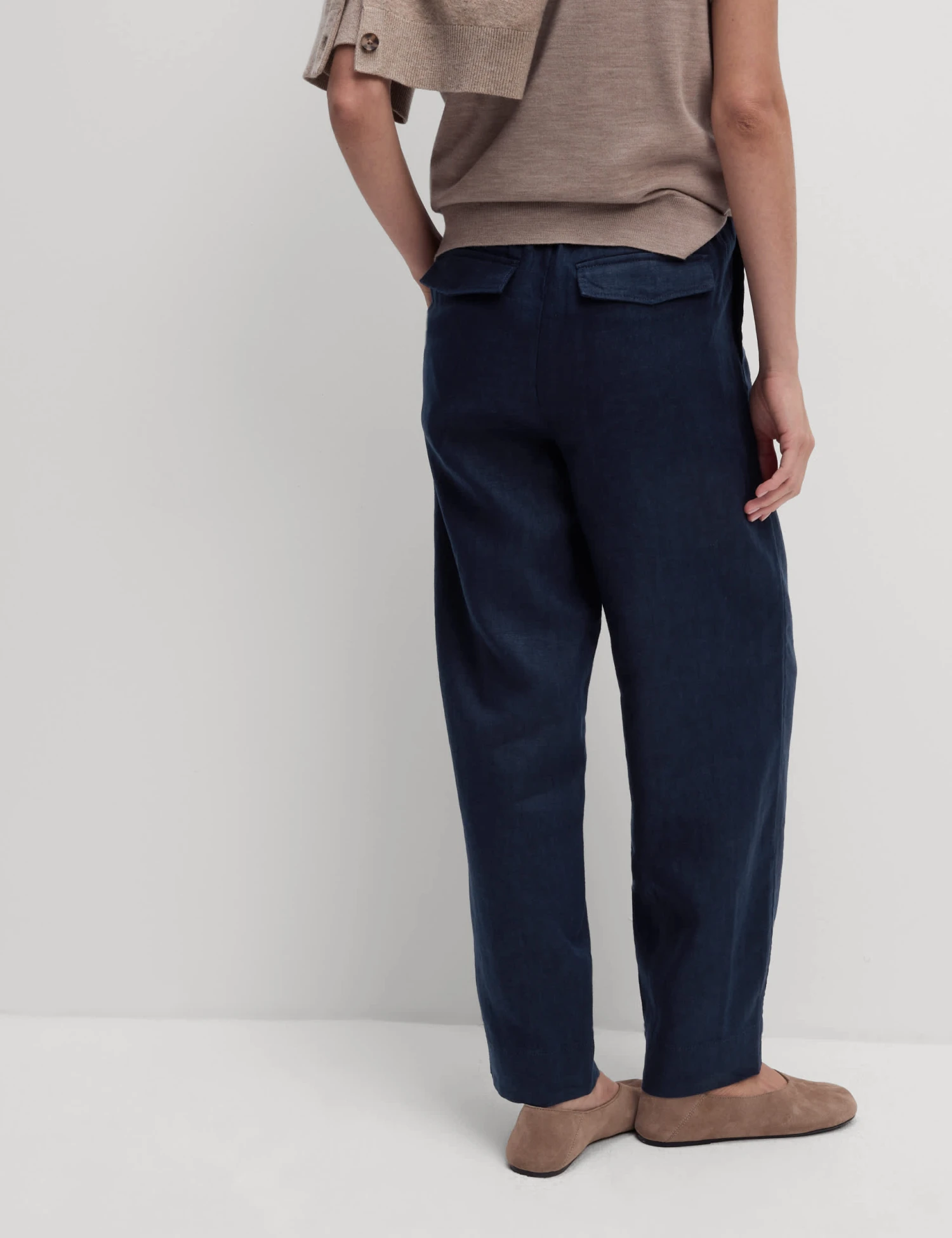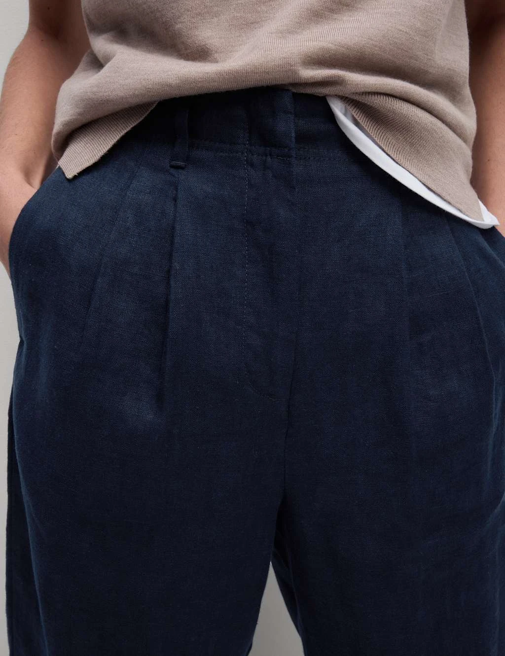 These pure linen trousers make a sophisticated addition to your warm weather wardrobe. They have a contemporary tapered fit, with a flattering high waist that’s elasticated at the back for comfort. The design features two front pockets and two back pockets, plus a neat hook bar and zip fastening. M&S Collection: easy-to-wear wardrobe staples that combine classic and contemporary styles.