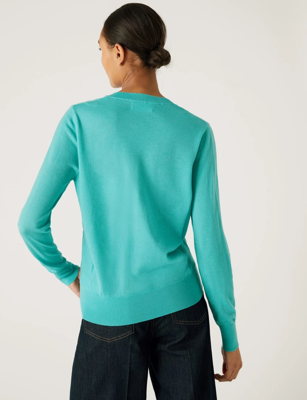 Luxurious pure merino wool means you’ll reach for this jumper whenever there’s a cold snap. It comes in a regular fit, with ribbed trims and a v-neckline for a smart finish.