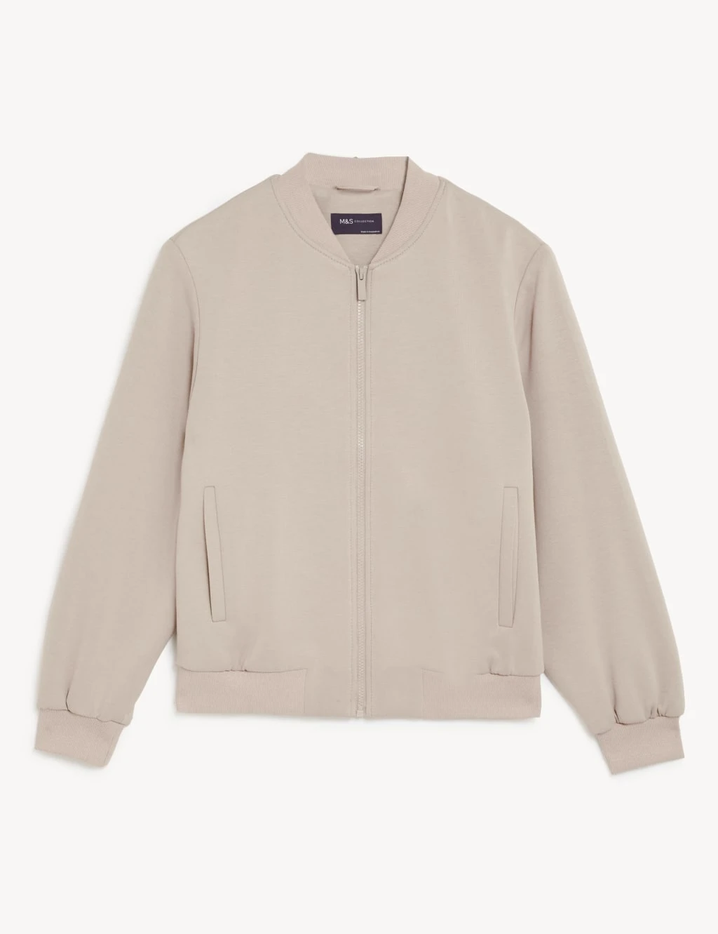Balloon sleeves bring a modern touch to this classic bomber jacket. Roomy relaxed fit, with a full lining and added stretch for extra comfort. Complete with an easy zip fastening and two handy front pockets.